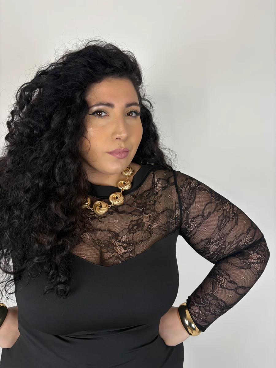 Abito in taglia unica Curvy, veste dalla taglia 46 alla taglia 56.
