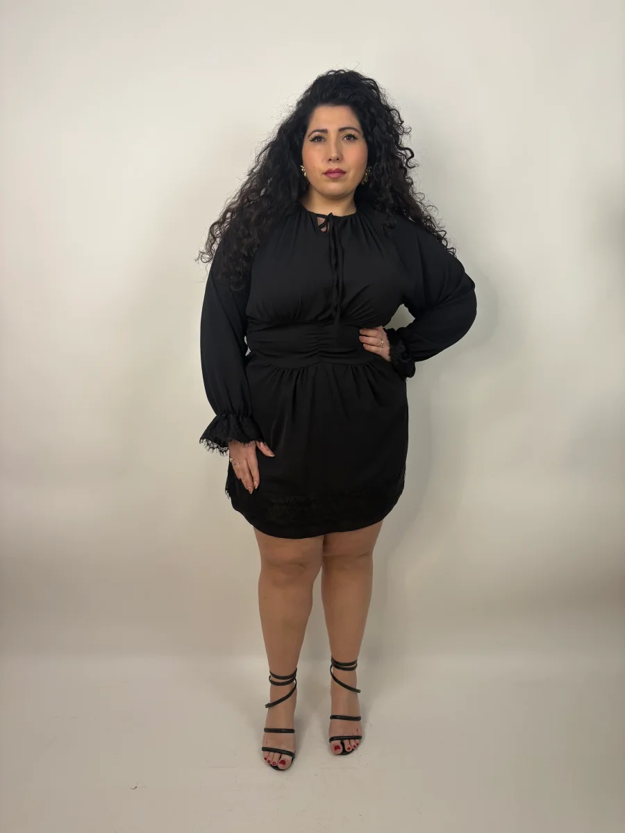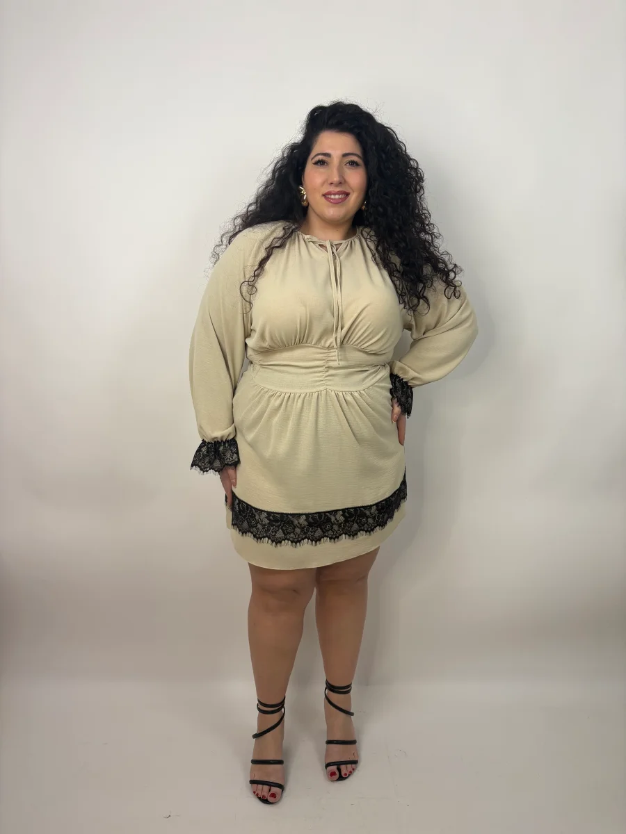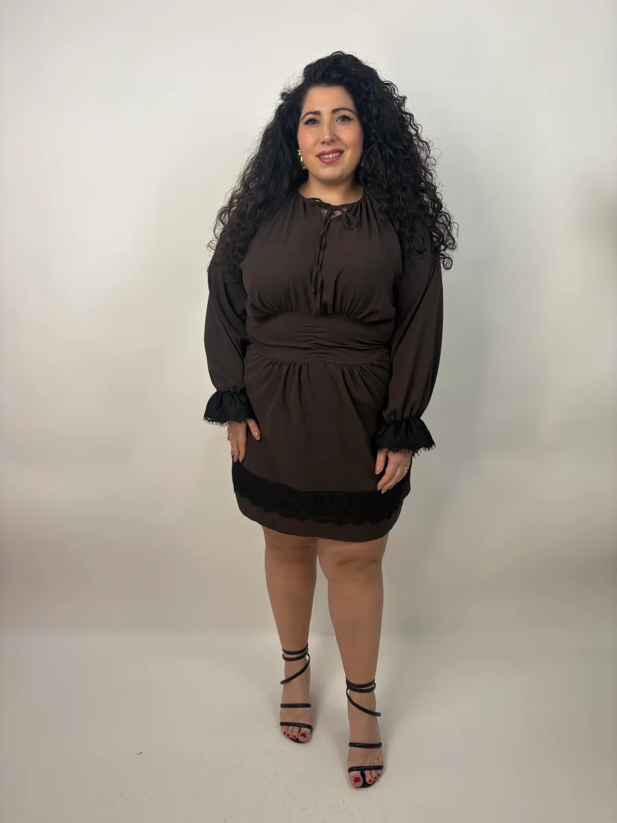 Abito in taglia unica Curvy, veste dalla tagllia 48 alla taglia 54. La ragazza in foto รจ taglia 52-54. I centimetri del suo corpo sono: Altezza 1.69 cm/ Giro vita 123 cm / Giro fianchi 143 cm
