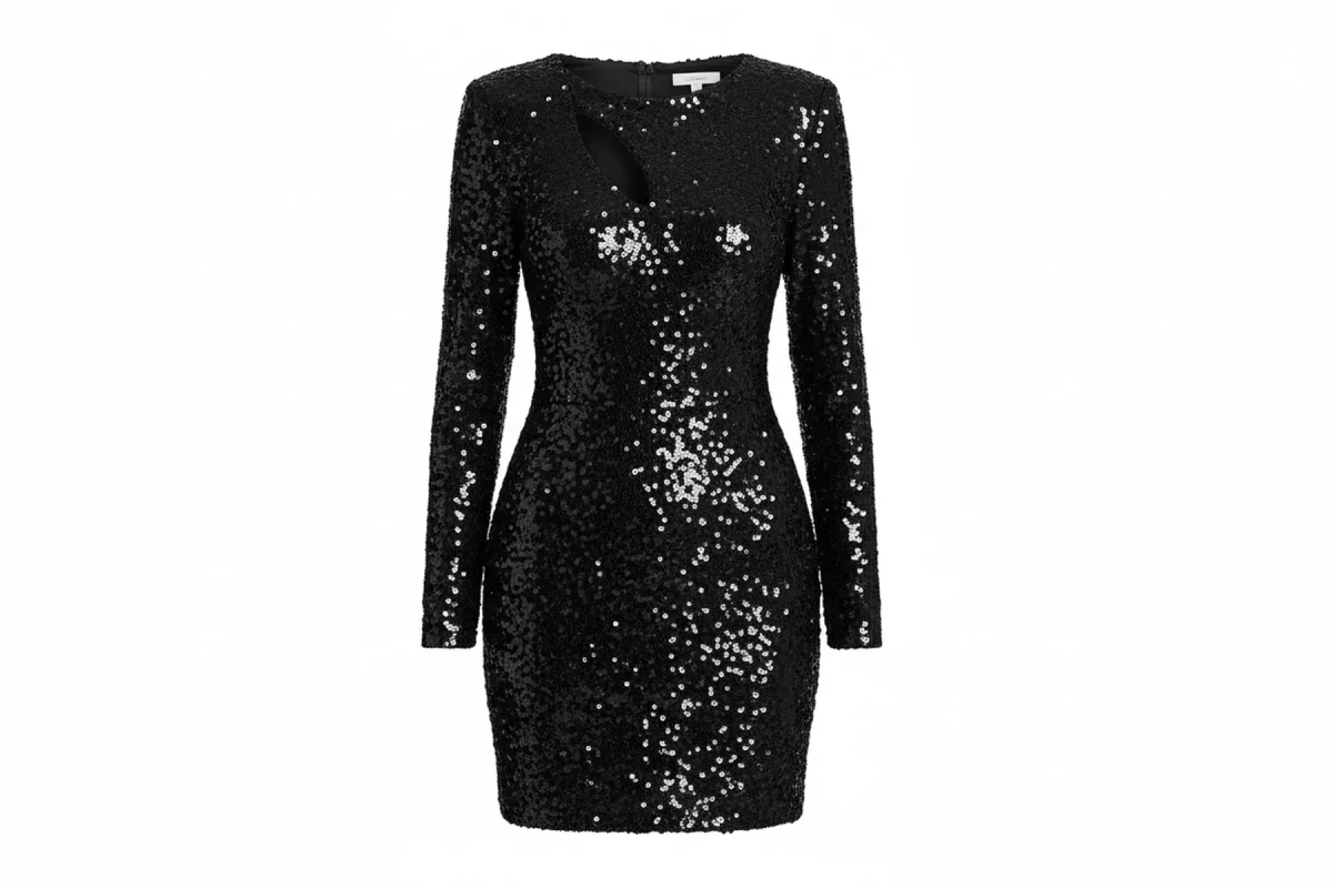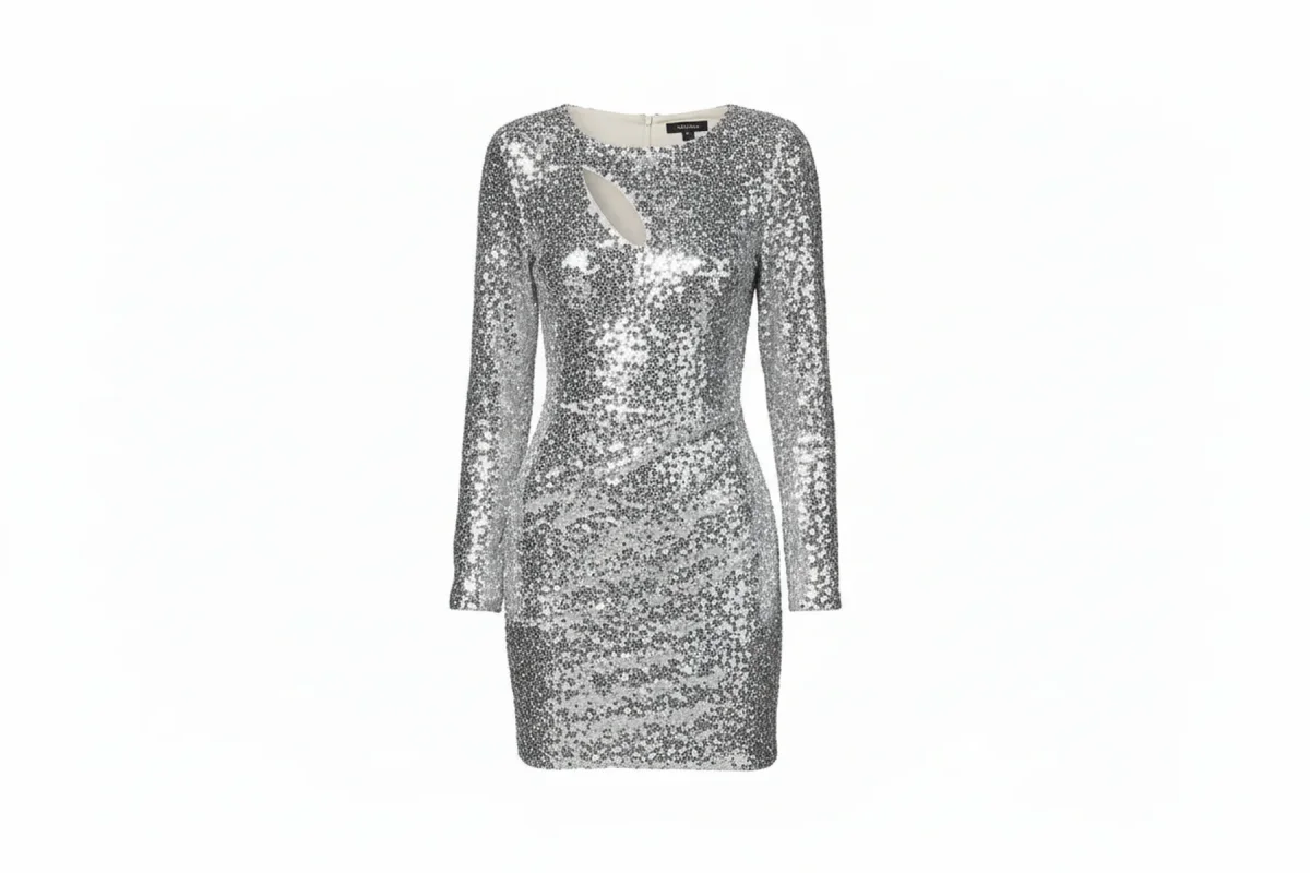 Abito Corto aderente in Paillettes con Cut-Out e Spalline