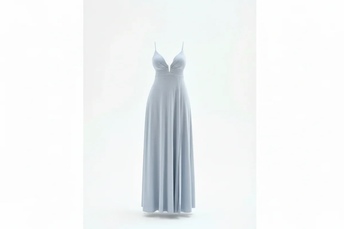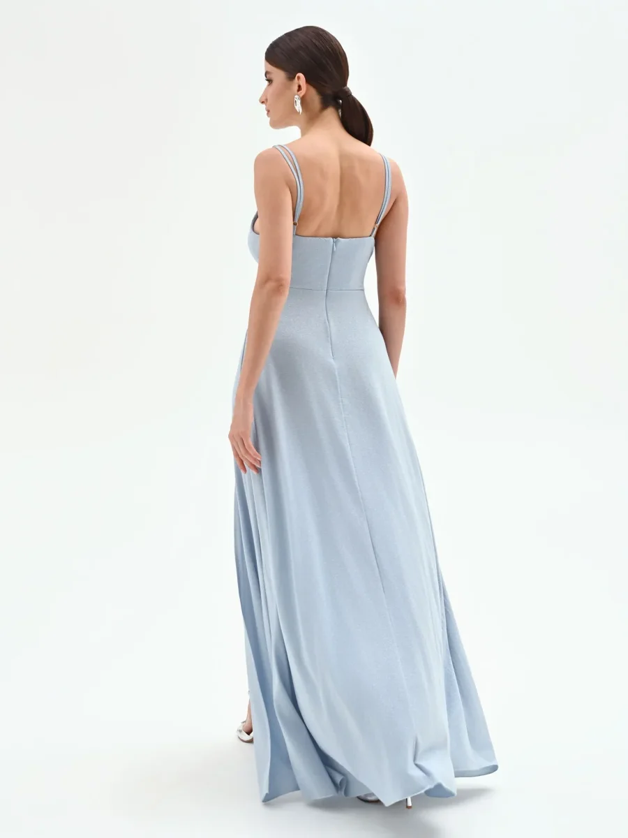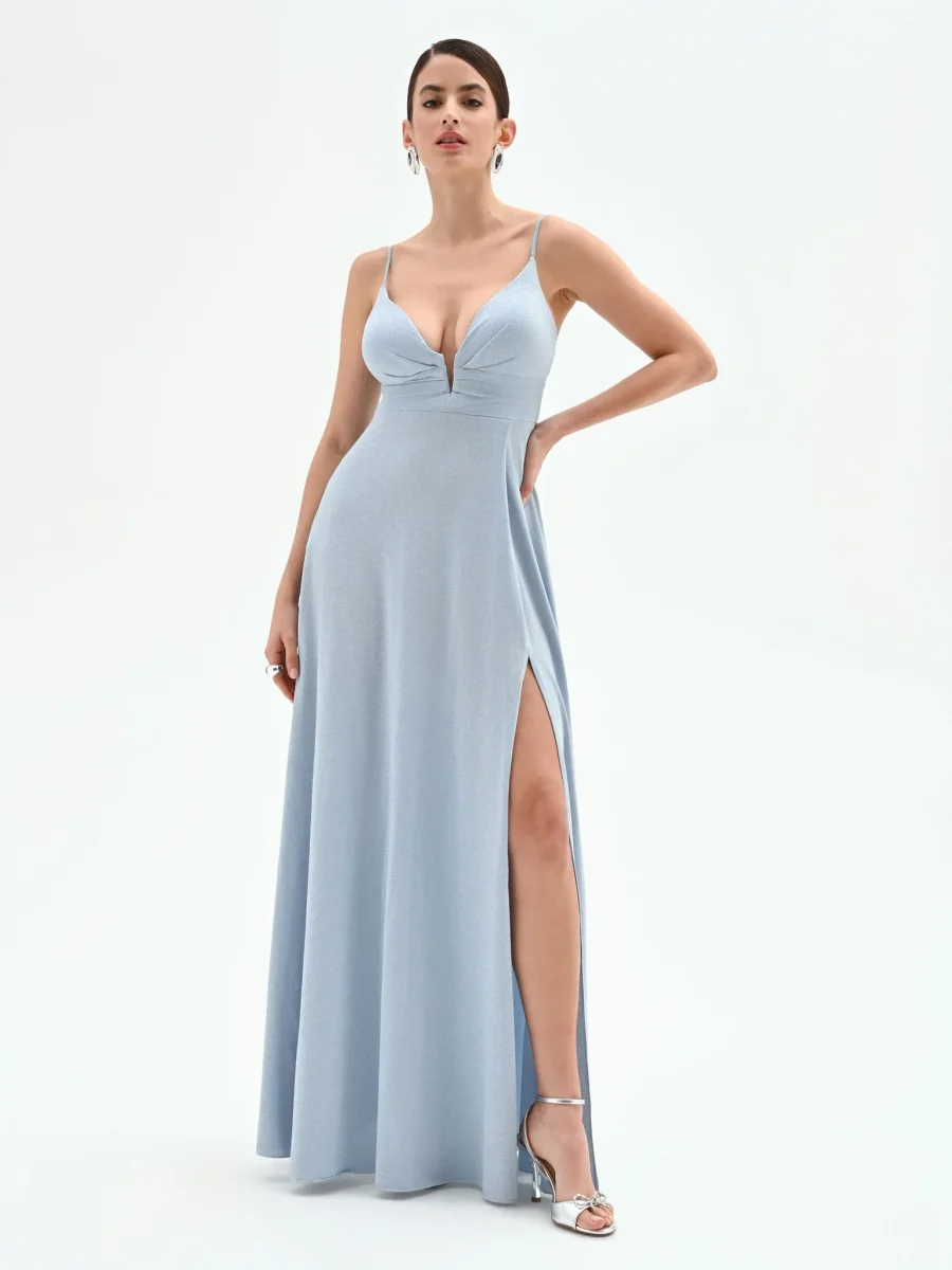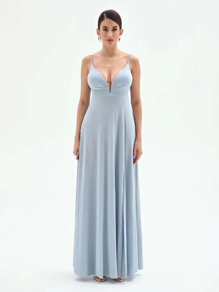 Abito “Azure Breeze” Abito lunghette in tessuto fluido con scollo drappeggiato d’avanti e scollatura profonda sul dietro