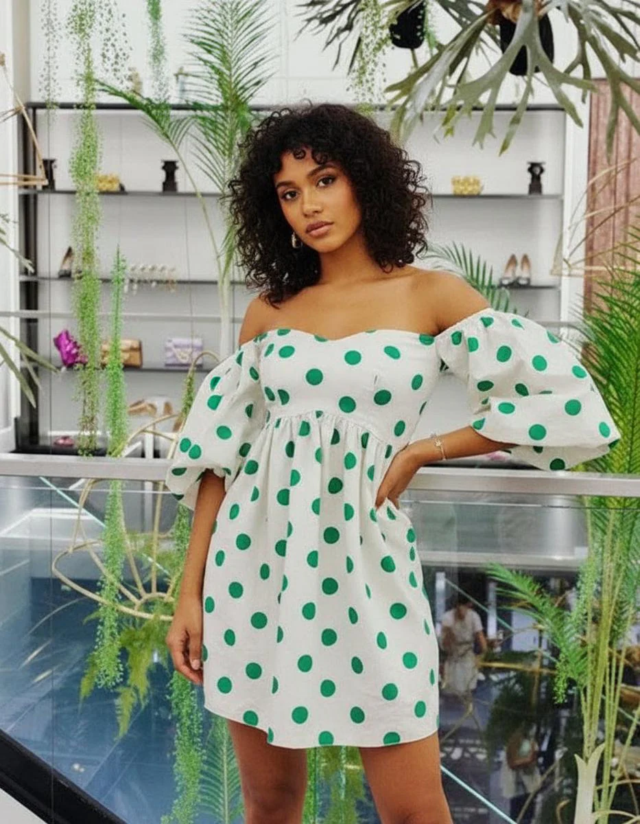 Scelto per la sua morbidezza, l’abito in puro cotone a pois รจ la scelta elegante e comoda per ogni occasione. Con la sua versatilitร si adatta ad ogni occasione, donando un look raffinato e confortevole. il connubio perfetto tra stile e comfort.