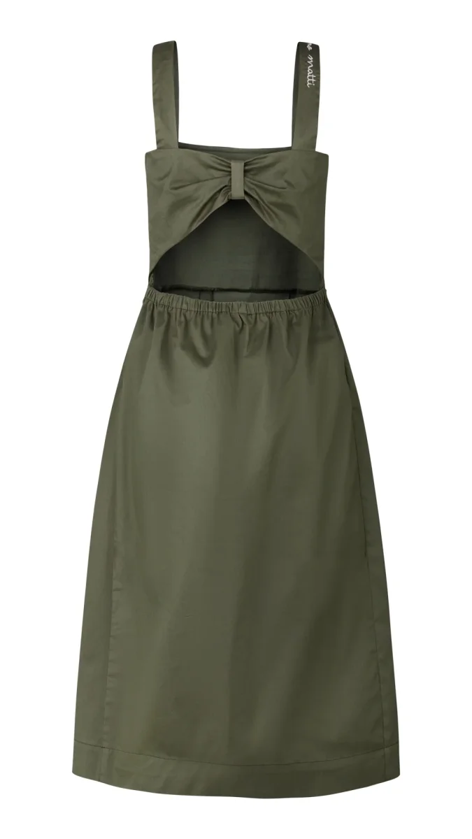 Abito “Blush Whisper”. Abito lunghette in tessuto fluido con scollo drappeggiato d’avanti e scollatura profonda sul dietro