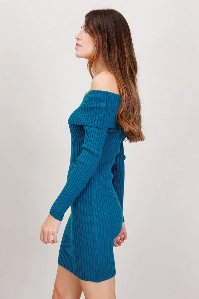 Abito scollo barca a costine Made in Italy, perfetto per un look elegante e confortevole in ogni stagione.