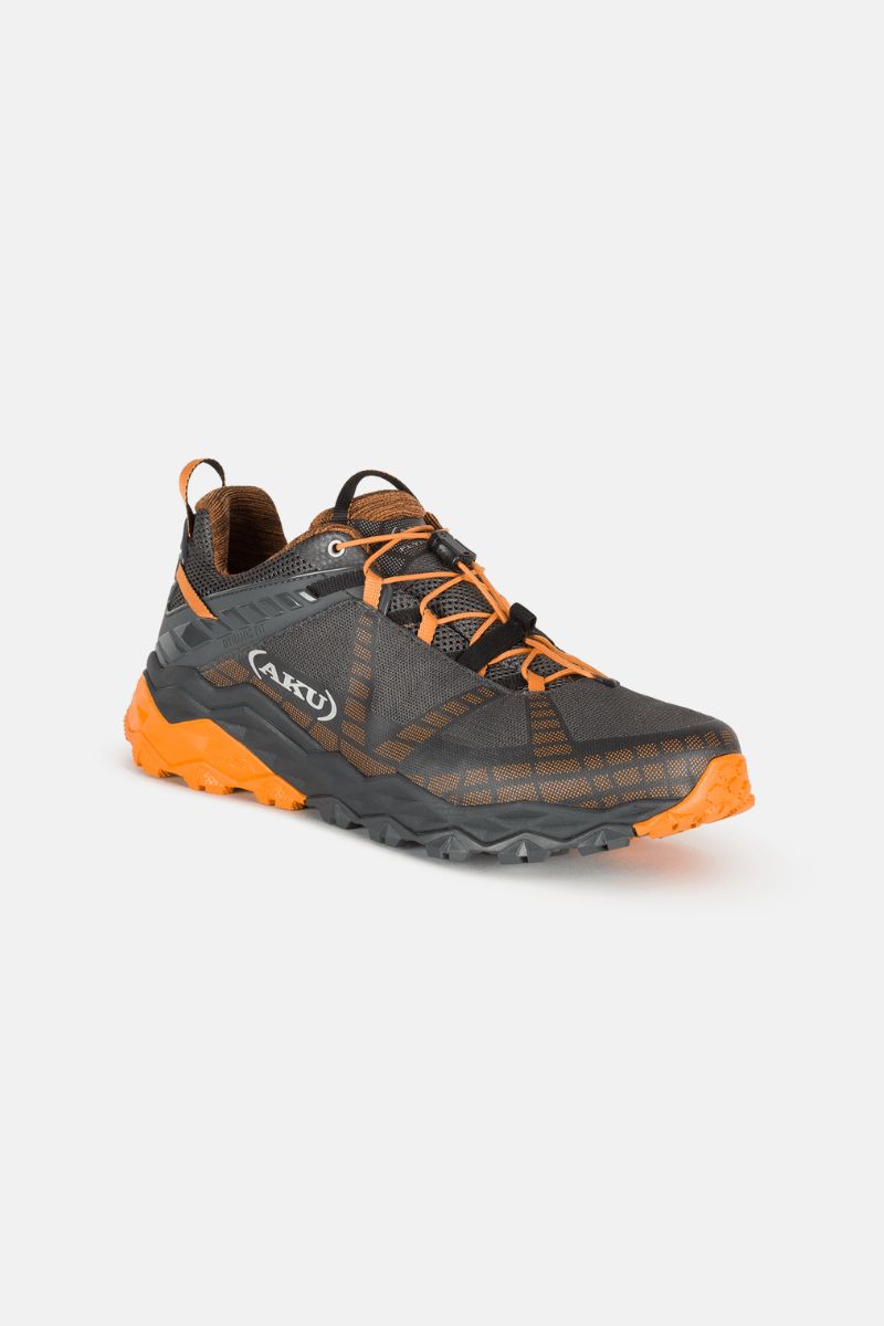 Calzatura da escursionismo veloce e per attivitร dinamiche, adatta per avventure off-road dovยรจ richiesta trazione, protezione e alta ammortizzazione. La suola Vibram Traction Lugs con Megagrip e zeppa High Cushion e High Rebound EVA offre aderenza e ammortizzazione sorprendenti. Addotta la tecnologia Dynamic Fit, che permette di adattare dinamicamente la tensione del tallone al proprio passo con un migliore comfort e stabilitร e il sistema AKU Elica Natural Stride System per favorire lยefficienza biodinamica.