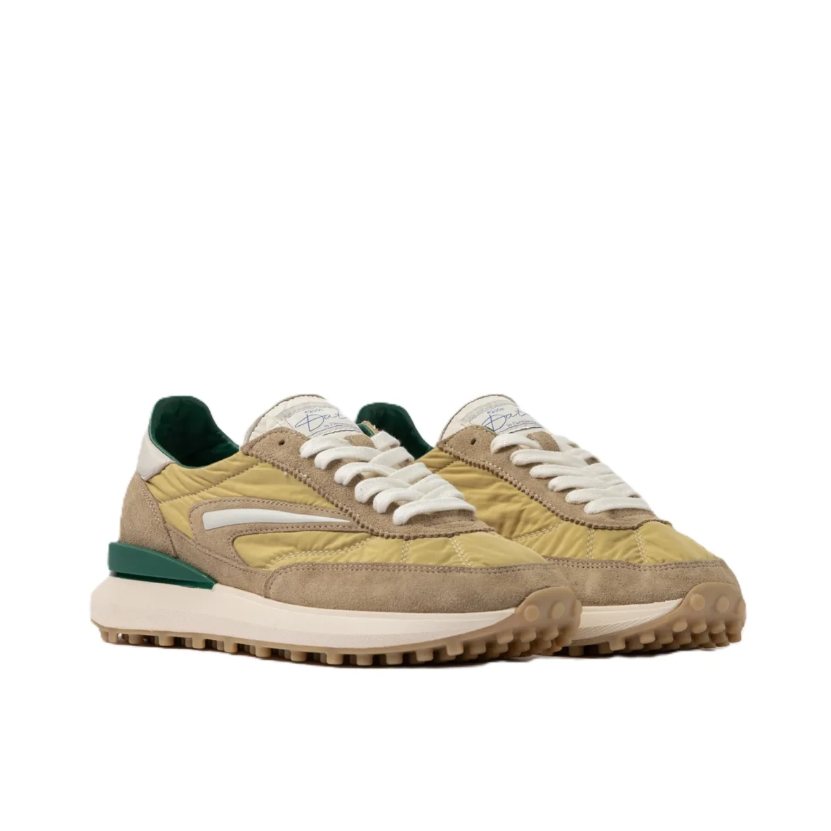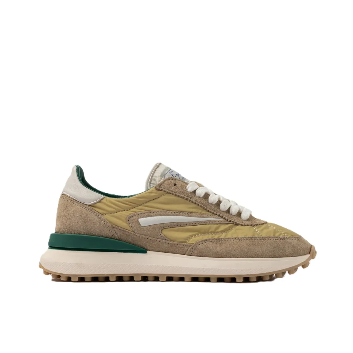 Running sneakers in nylon beige con dettagli in suede tono su tono.