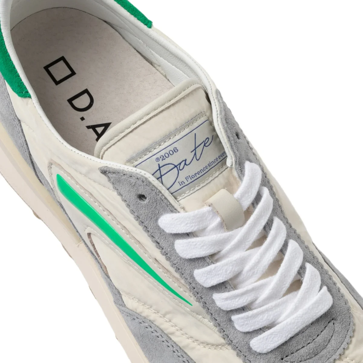 ATHLETA NYLON Running sneakers in nylon avorio con dettagli in suede grigio chiaro. – La label con scritta D.A.T.E. รจ cucita sulla linguetta in nylon.– I lacci sono in cotone.– Il logo quadrato รจ impresso sul talloncino in suede verde.– L’inserto sul lato esterno รจ in nappa colore avorio con dettaglio stampato colore verde.– La […]