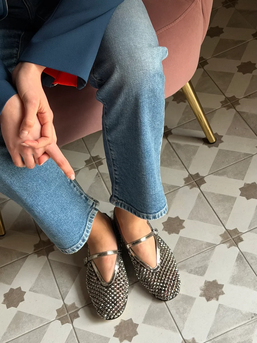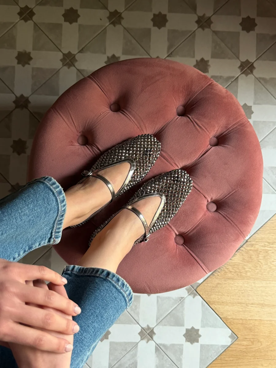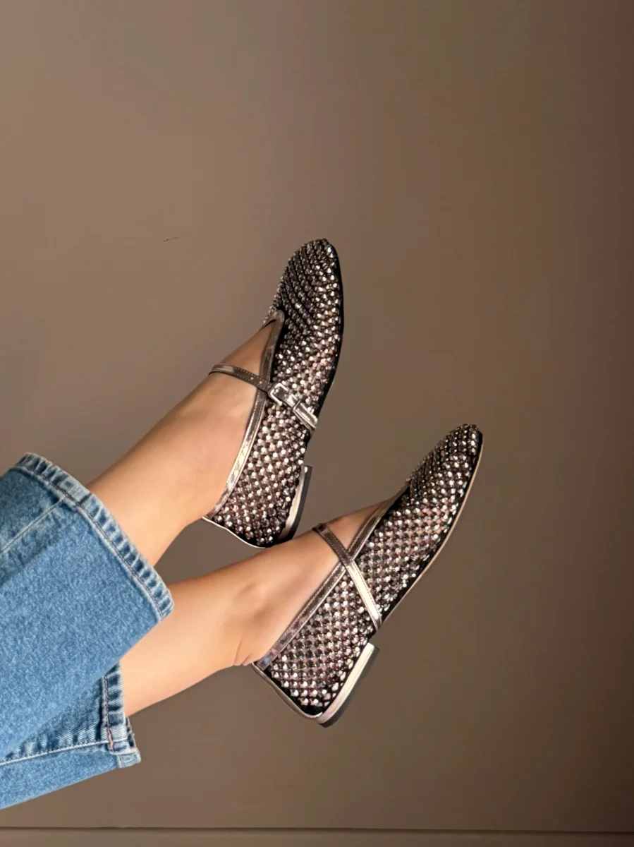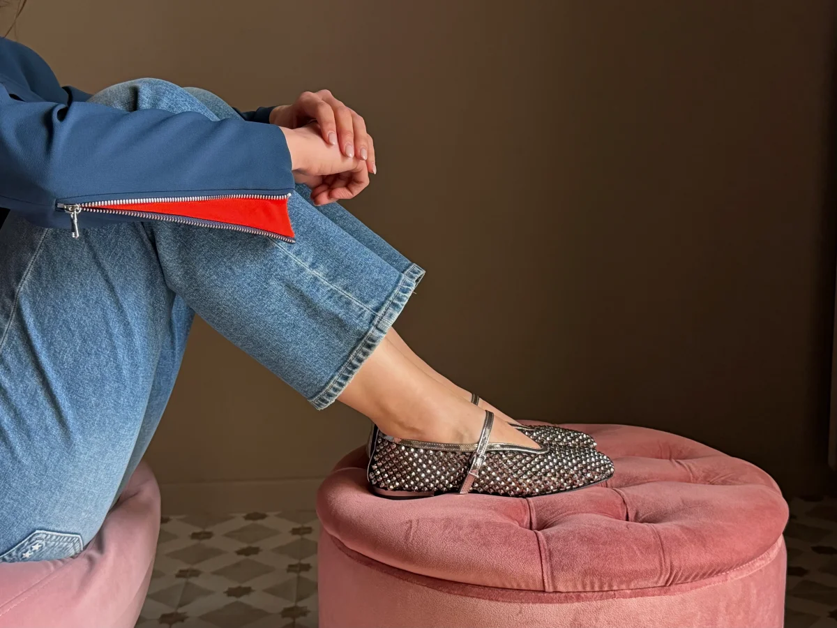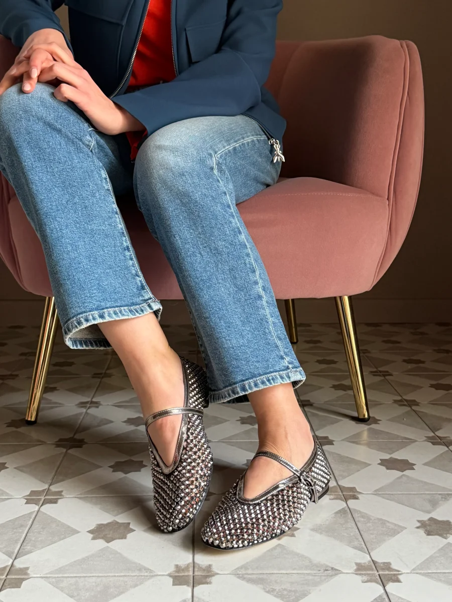 Il consiglio in boutique: “ร la scarpa che trasforma il concetto di ‘flat’. La maglia di cristalli avvolge il piede come una seconda pelle luminosa. Immaginala durante un evento estivo: la freschezza di un sandalo con l’eleganza formale di una ballerina d’alta moda.
