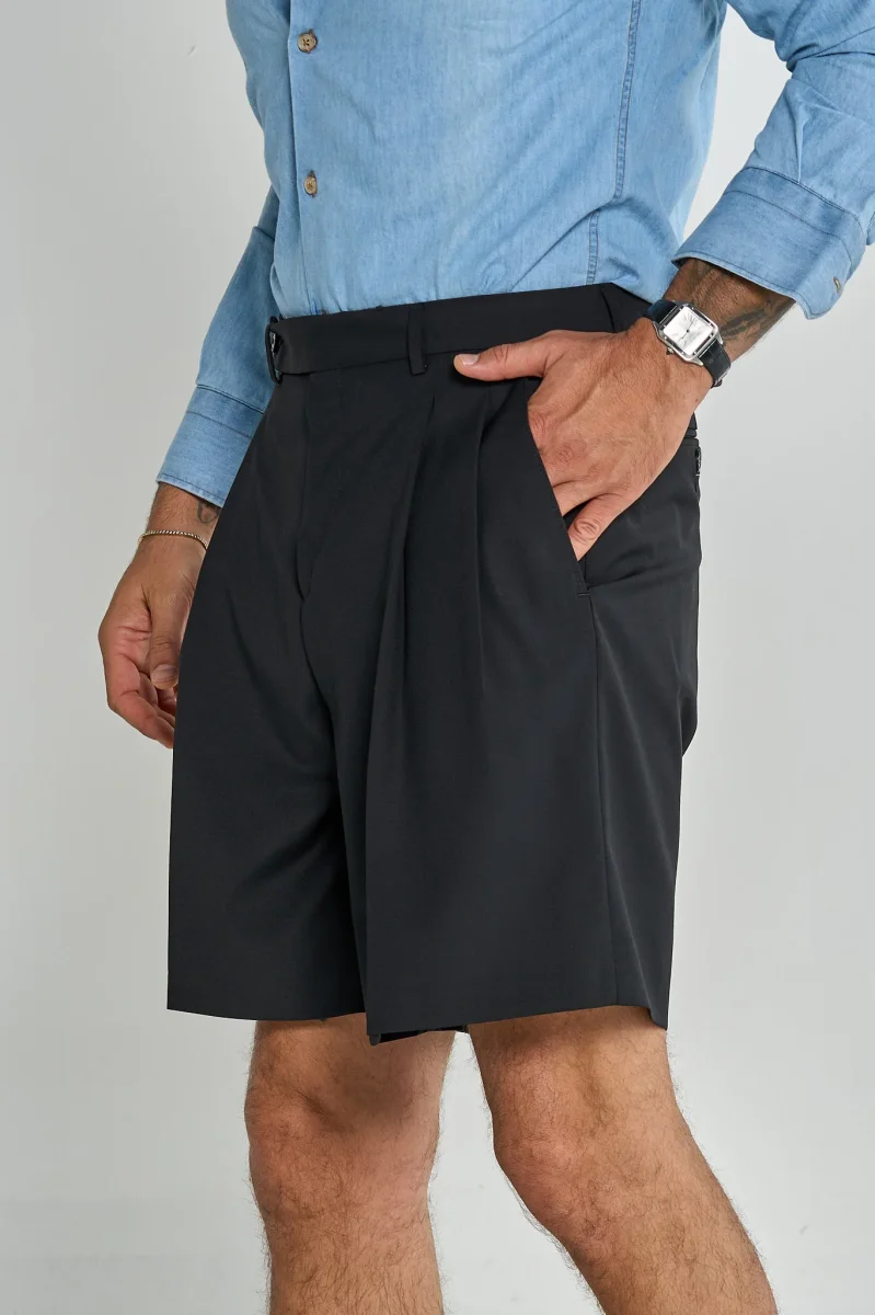 Bermuda Cinta Lunga con Passanti Nero Milano