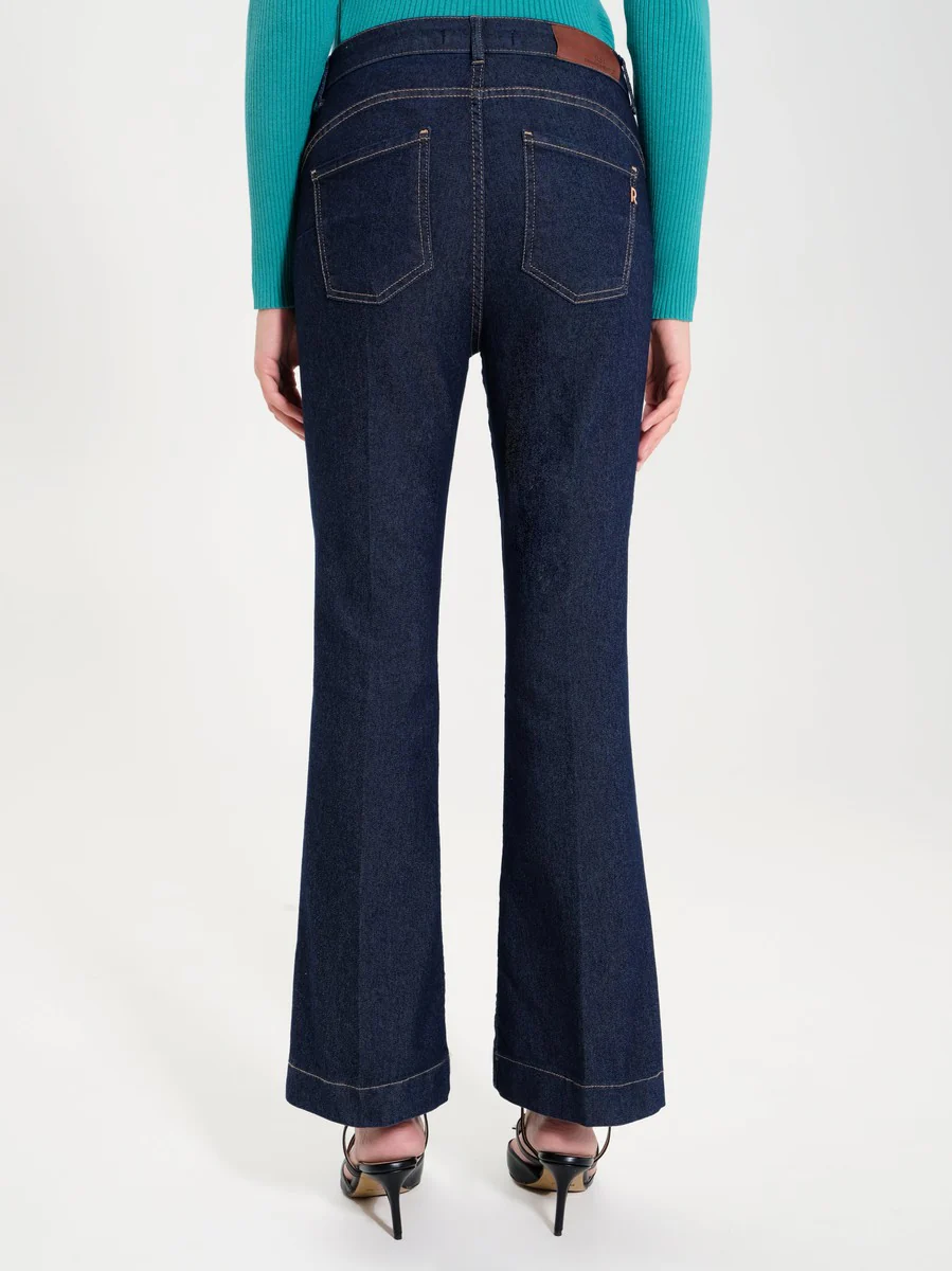 Jeans Zampa Elastico Rinascimento, modello vita alta 5tasche, lunghezza regolare per poterlo indossare sia con sneakers basse che con decollete’. Il capo รจ Interamente Made In Italy.