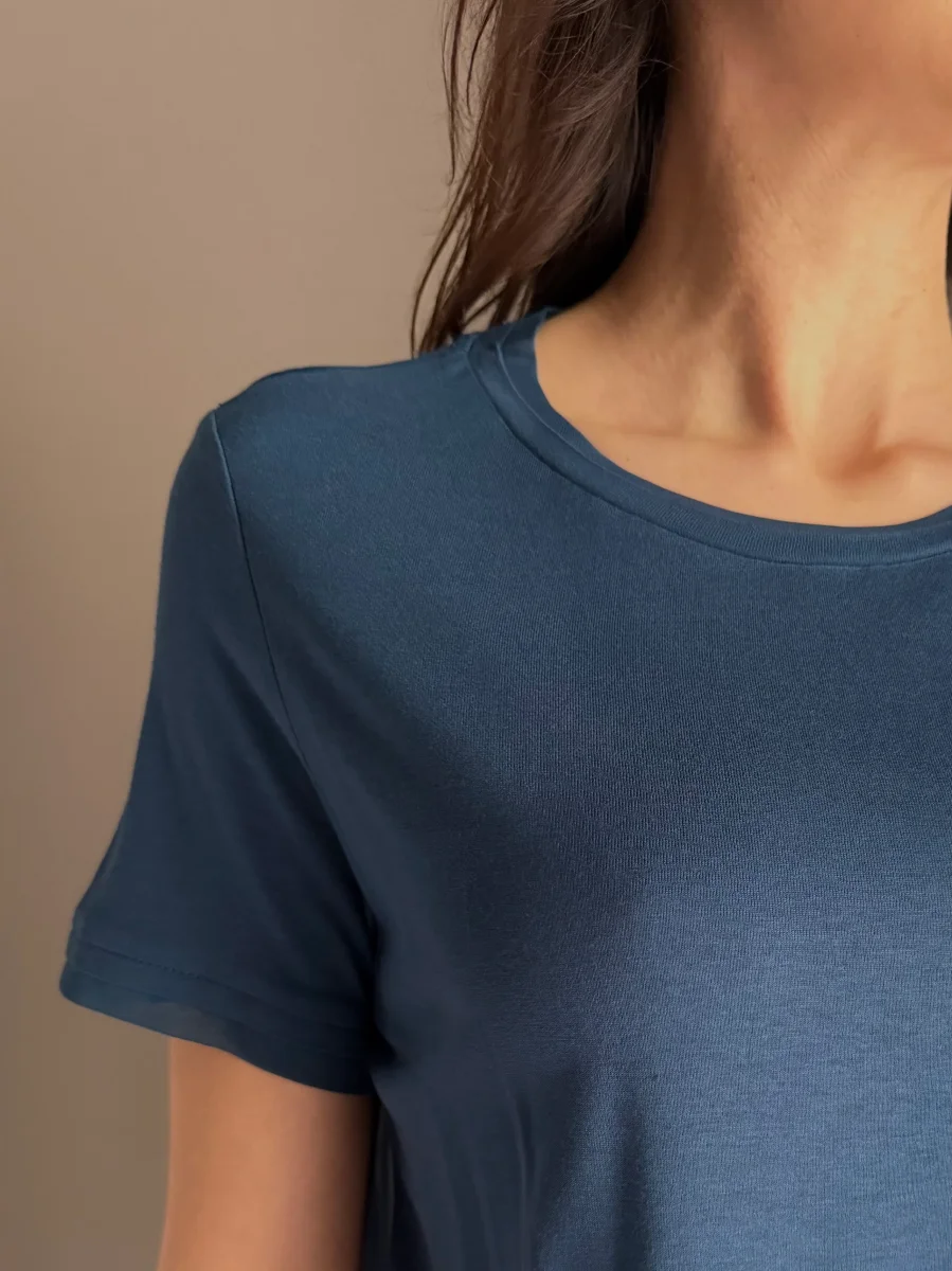 Questa t-shirt unisce comfort e design grazie alla fibra di viscosa premium, fresca e traspirante sulla pelle.
