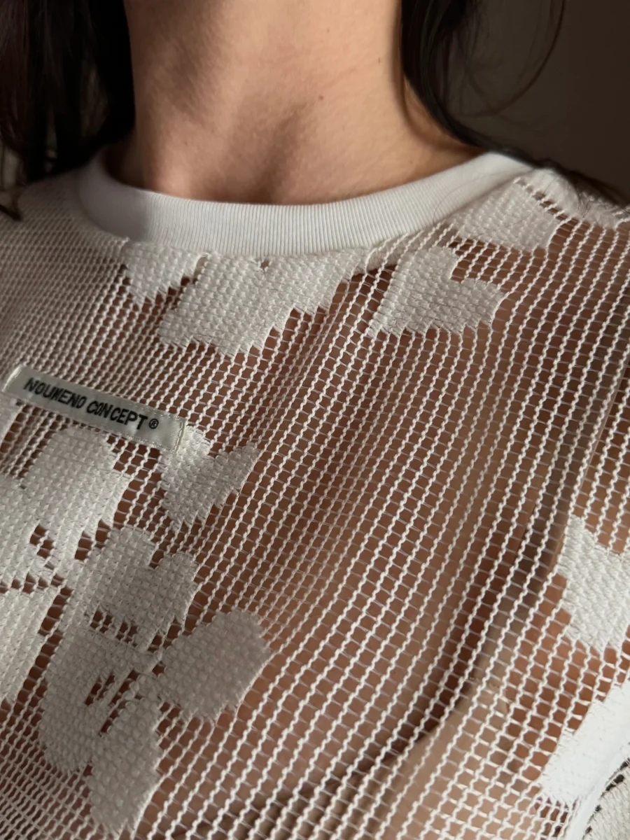 Indossare Noumeno Concept significa abbracciare una filosofia che va oltre la moda: il brand esplora l’essenza delle cose, creando capi che celebrano l’autenticitร e una bellezza non convenzionale. Questa maglia in pizzo รจ la perfetta sintesi di questa visione: un equilibrio tra la delicatezza della texture e una struttura moderna e decisa.