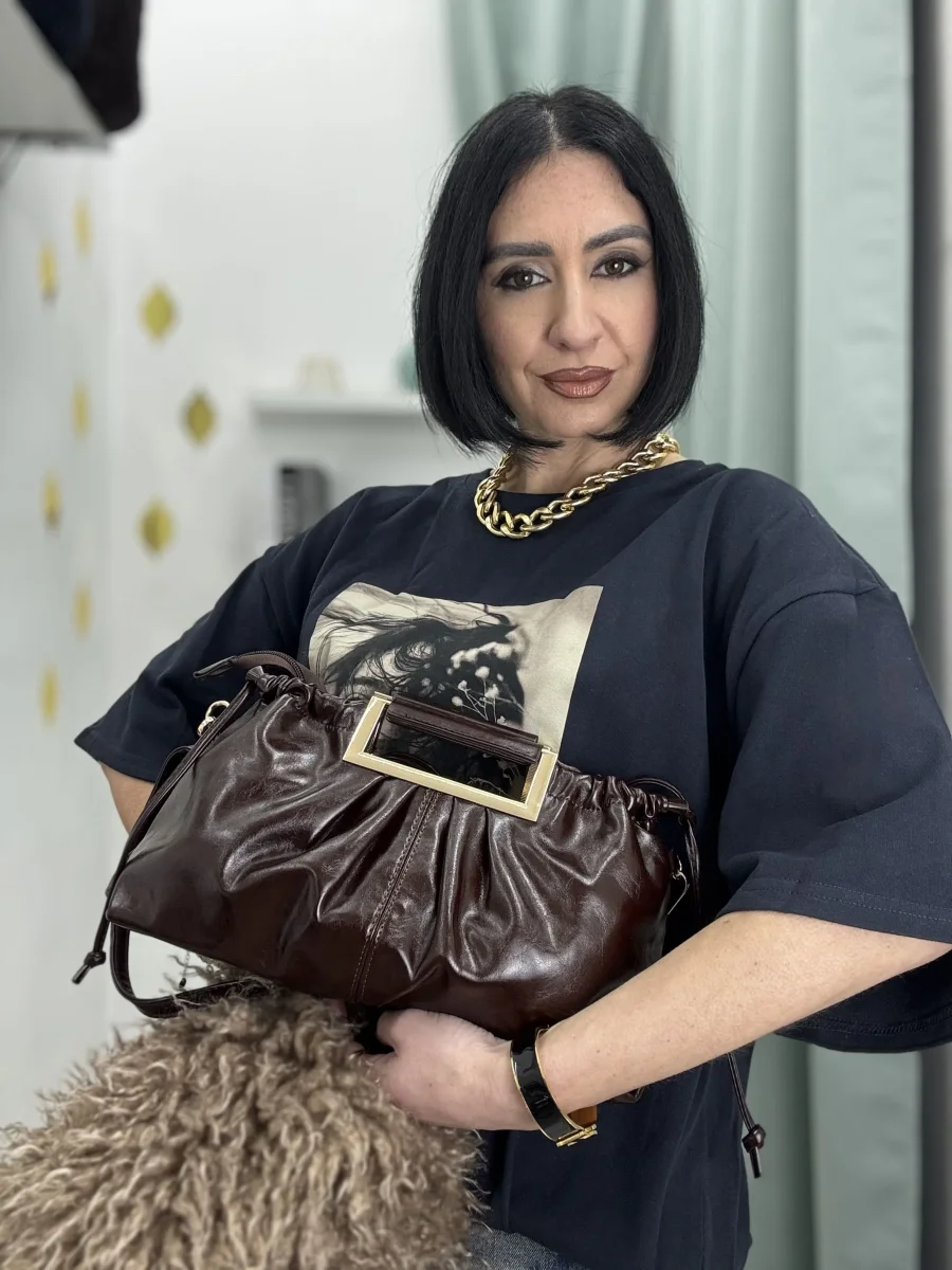 Disponibile in tre eleganti colori – marrone, rossa e beige – questa clutch si abbina facilmente a look casual, da giorno o da sera, aggiungendo un tocco di classe e modernità.