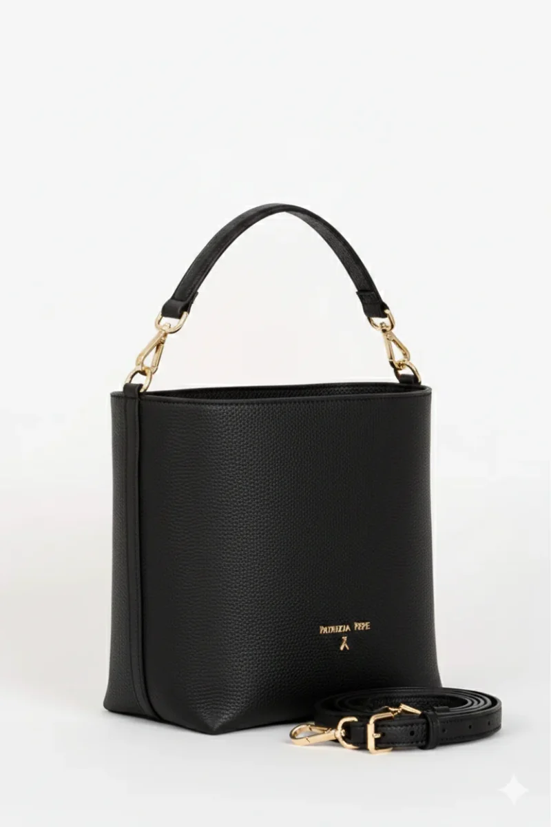 Questa borsa secchiello firmata Patrizia Pepe รจ il perfetto connubio tra design strutturato e praticitร quotidiana. Realizzata interamente in 100% pregiata pelle dalla texture grana naturale, si presenta nella sua veste piรน iconica e intramontabile: il nero profondo. I Dettagli che Fanno la Differenza โข Design Sofisticato: La silhouette pulita รจ impreziosita dal lettering in […]