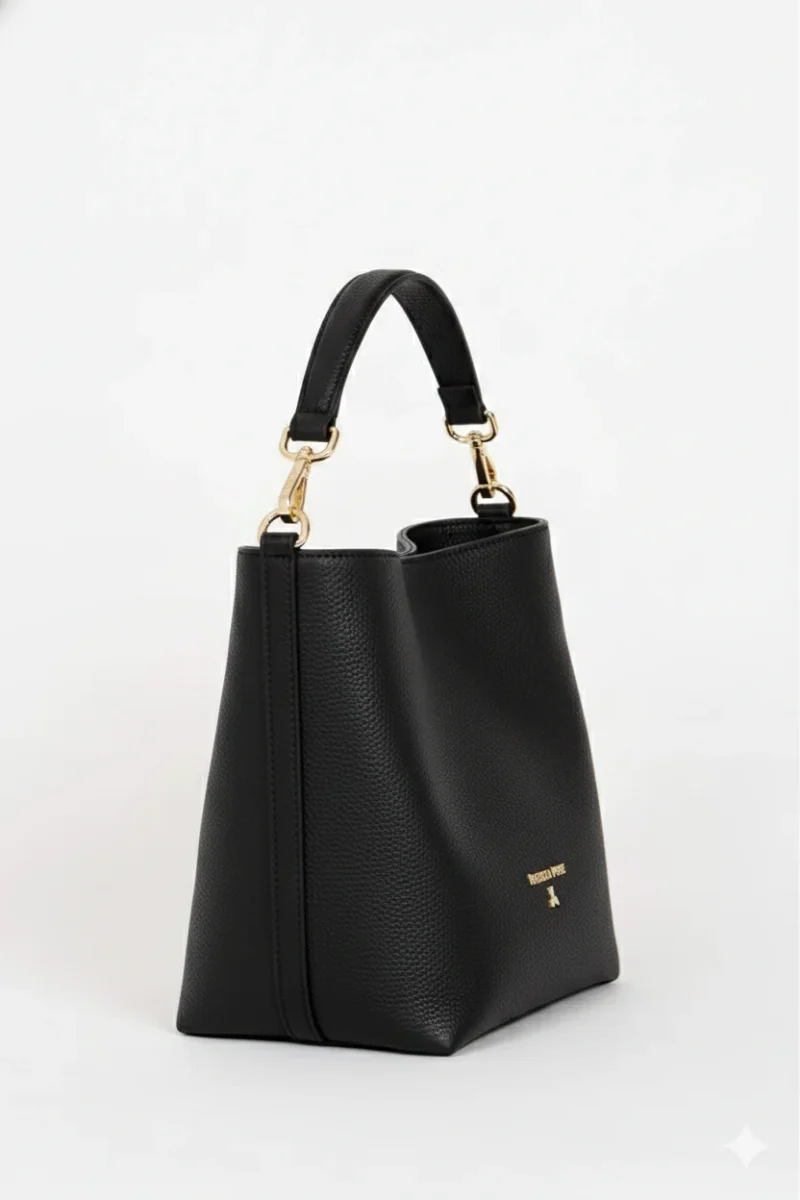 “ร l’accessorio ideale per la donna che cerca un pezzo versatile; la struttura rigida mantiene la borsa sempre impeccabile, mentre l’abbinamento nero-oro la rende un classico istantaneo da abbinare sia al denim che all’abito sartoriale.”