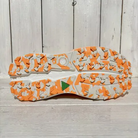 I fianchi rialzati aiutano a tenere fermo il piede, mentre le scanalature piรน larghe sulla base e sulla suola stabilizzano gli atterraggi sui terreni accidentati.