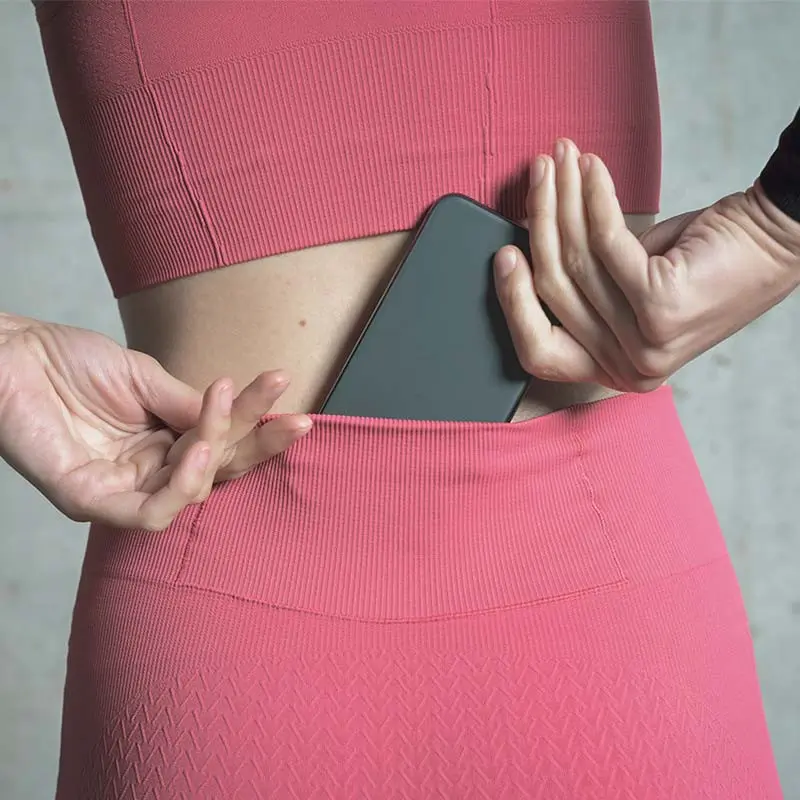 L’elastico a vita alta mantiene i leggings in posizione durante lo sport. Ha anche una tasca posteriore per le chiavi o lo smartphone.