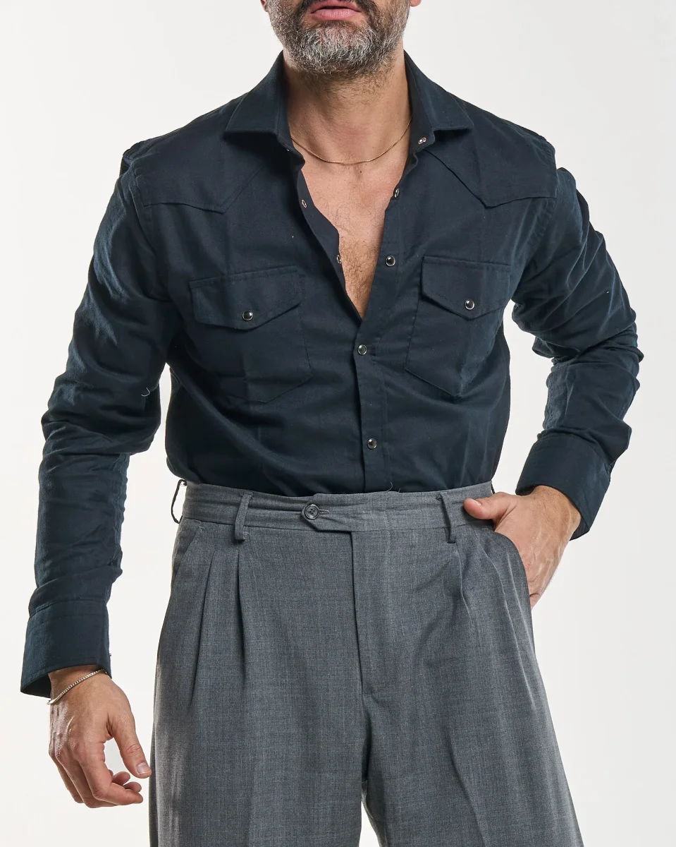 Camicia Texana in Flanella Nera