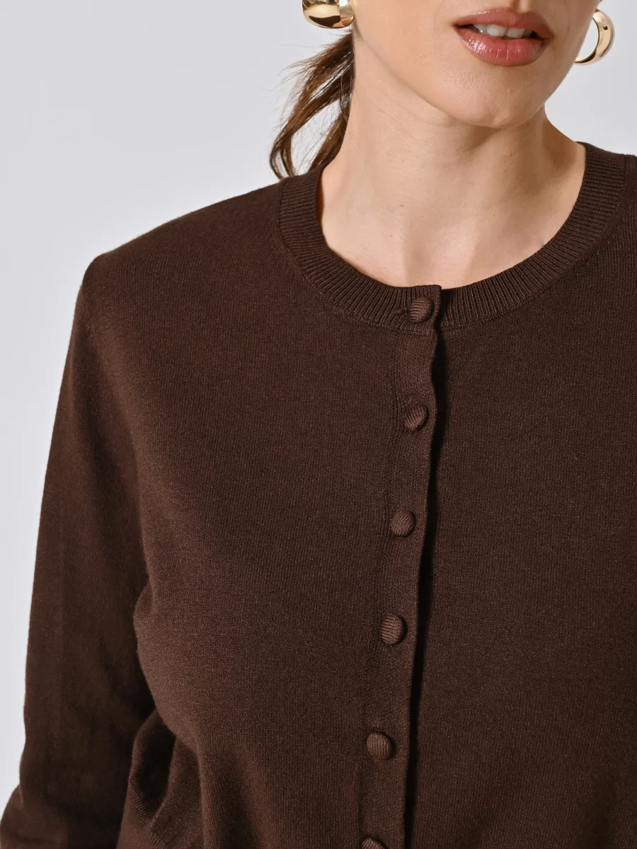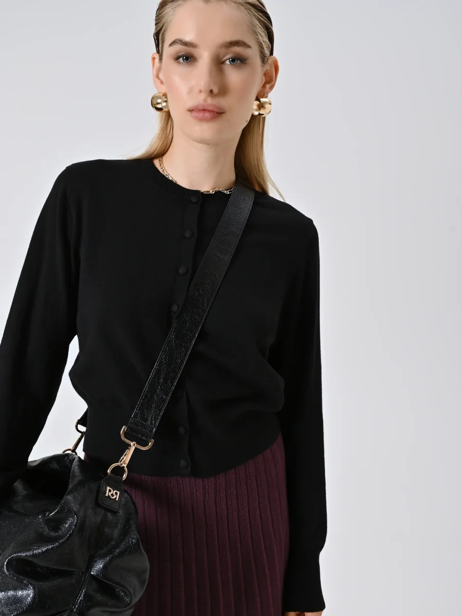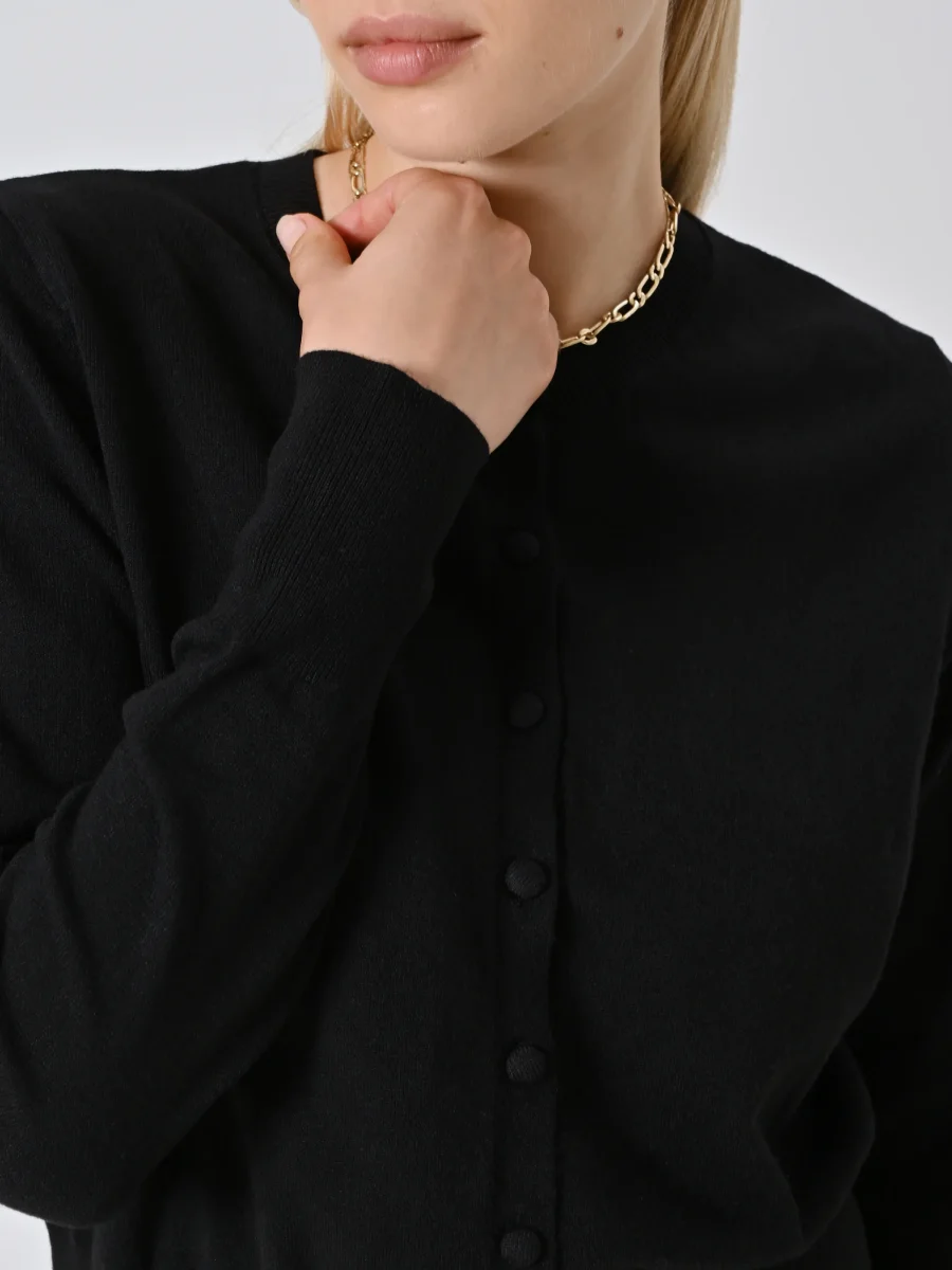 Il Cardigan in maglia รจ un capo essenziale dal fascino discreto, ideale per completare look sofisticati e femminili.