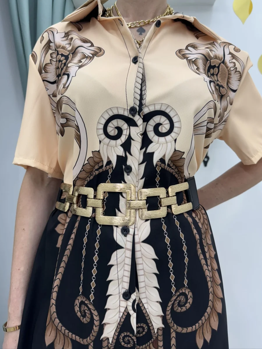 Cintura con fascia elastica e fibbia a fiore fascia elastica nera con bottoni a clic dietro fibbia a catena Disponibile nella variante oro o argento