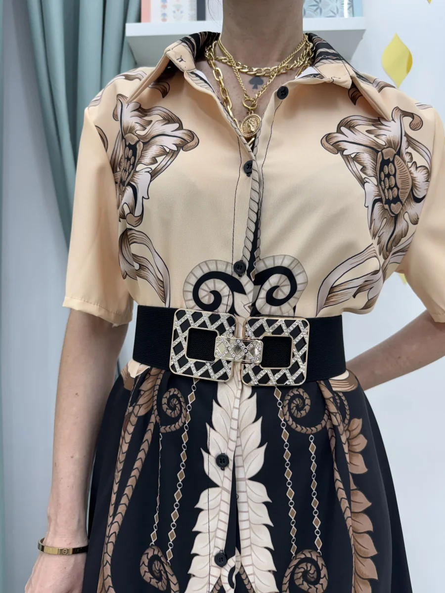 Cintura con fascia elastica e fibbia con strass
