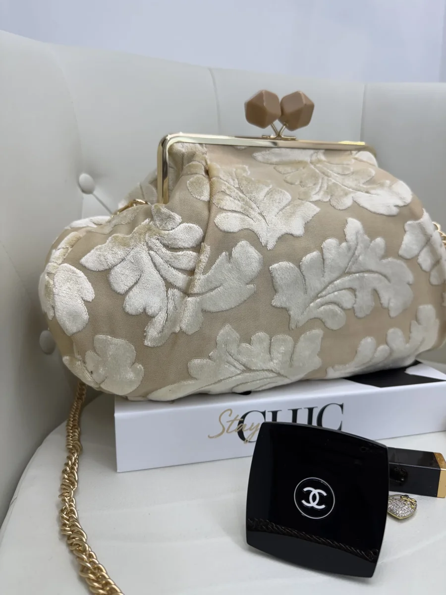 Aggiungi un tocco glamour e originale ai tuoi outfit con la clutch maxi con rifiniture dorate e tracolla a catena. Realizzata in stoffa di alta qualità con preziosi dettagli in ciniglia, questa borsa è disponibile in tante fantasie uniche e ricercate, tra cui floreale, maculata e a foglie, per adattarsi al tuo stile in ogni […]