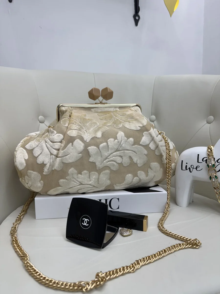 Aggiungi un tocco glamour e originale ai tuoi outfit con la clutch maxi con rifiniture dorate e tracolla a catena. Realizzata in stoffa di alta qualità con preziosi dettagli in ciniglia, questa borsa è disponibile in tante fantasie uniche e ricercate, tra cui floreale, maculata e a foglie, per adattarsi al tuo stile in ogni occasione.