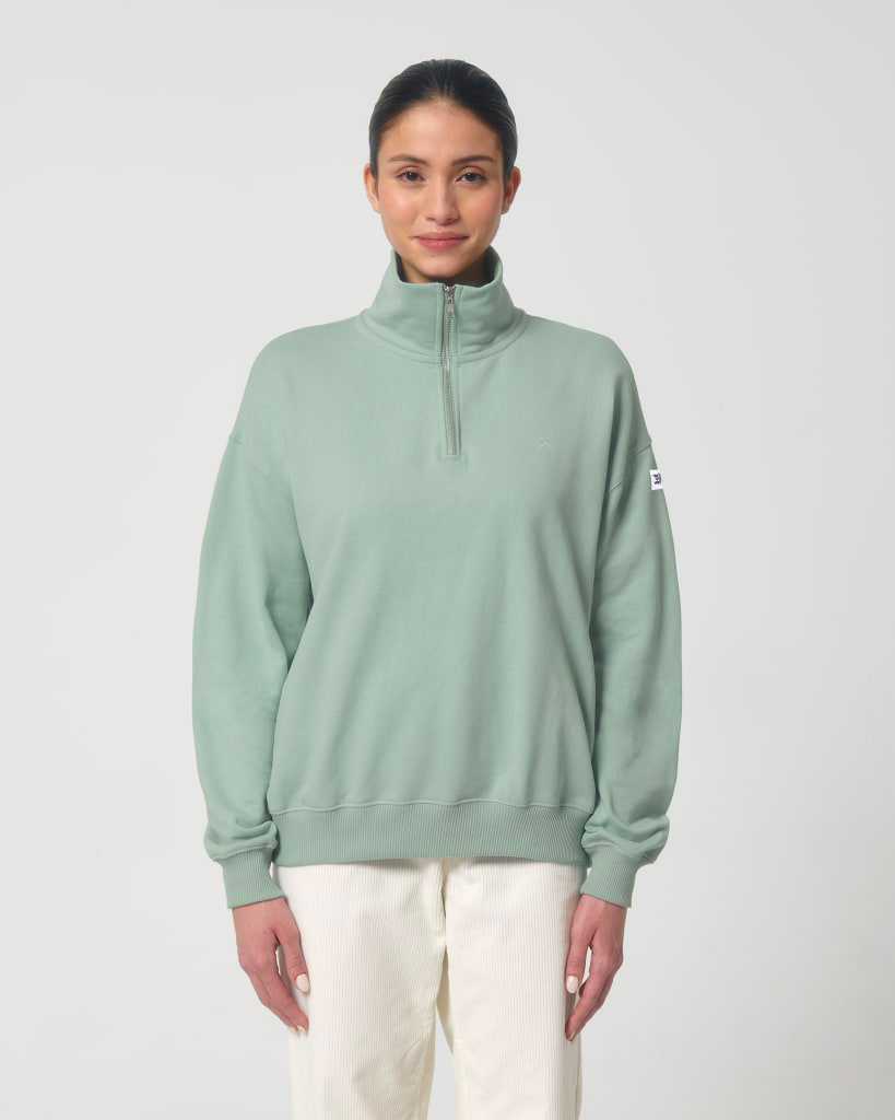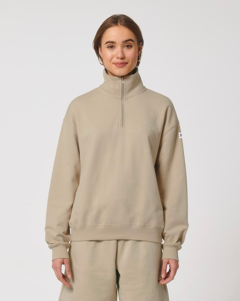 La modella nella foto รจ alta 173cm e indossa una taglia S. Tra le top 4 caratteristiche della nostra CozyHaven abbiamo: maniche a giro per far girare la testa a chi incontri nel sentiero, collo alto per non farti indossare il foulard della nonna, zip centrale sul davanti, fondo manica e bordo inferiore lavorati a costine, cosรฌ la puoi abbinare ai nostri cappelli fighissimi.