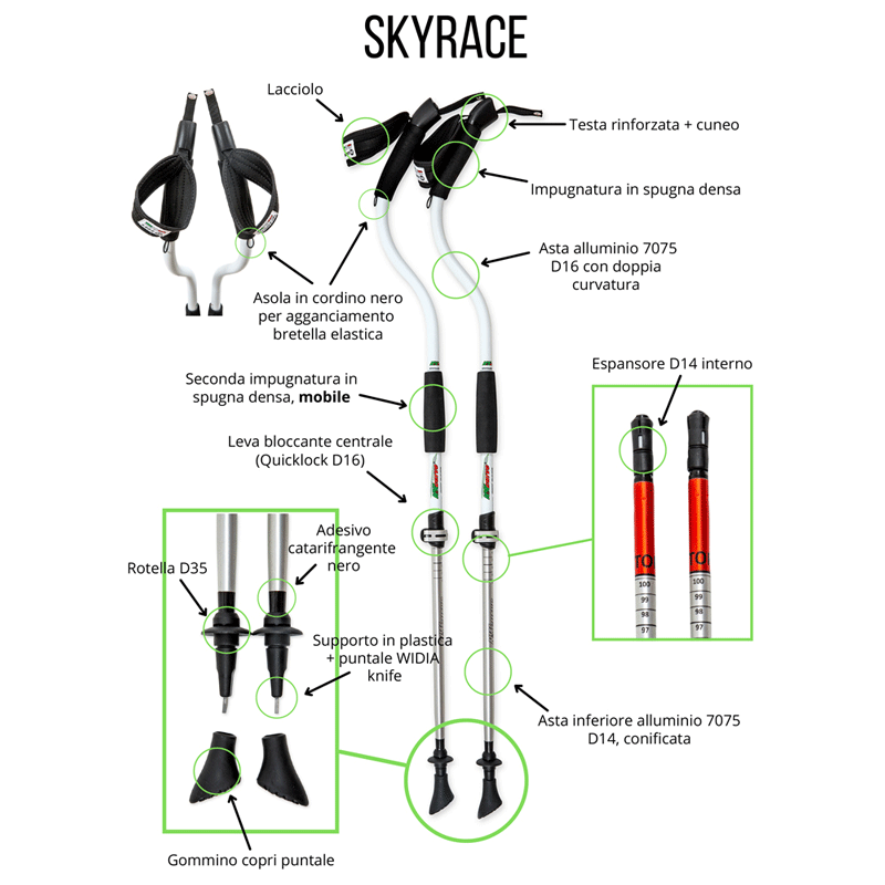 AVVERTENZE: CON I BASTONCINI A TRACOLLA POSIZIONARE I PUNTALI VERSO LโALTO