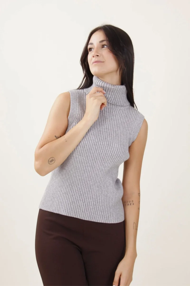 Dolcevita a Costine senza maniche a Collo Alto