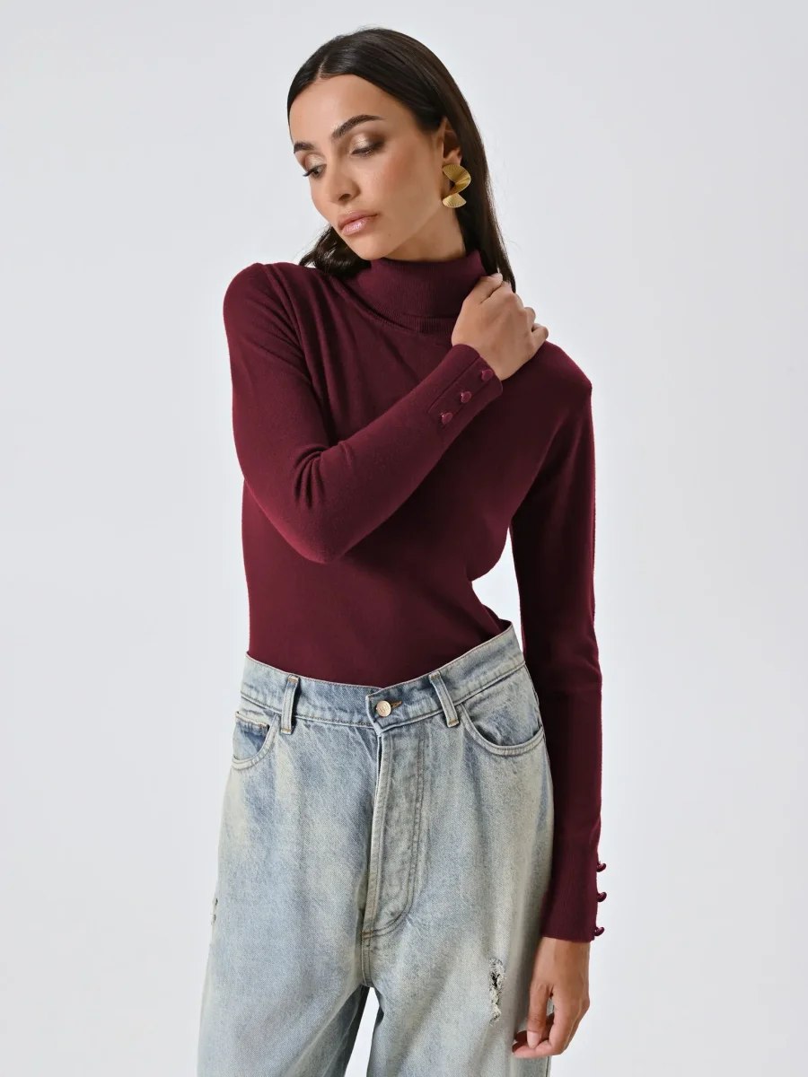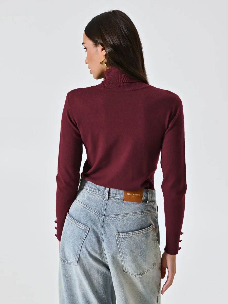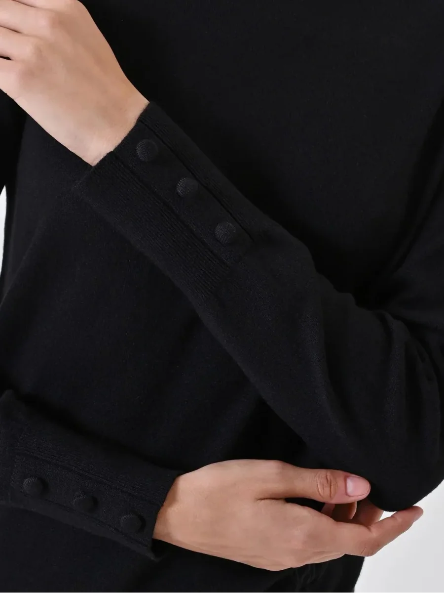 La vestibilitร aderente lo rende perfetto per la stratificazione, mentre il tessuto morbido garantisce movimento fluido e comfort che dura tutto il giorno. I bottoni decorativi sui polsini aggiungono quel dettaglio prezioso che fa la differenza.