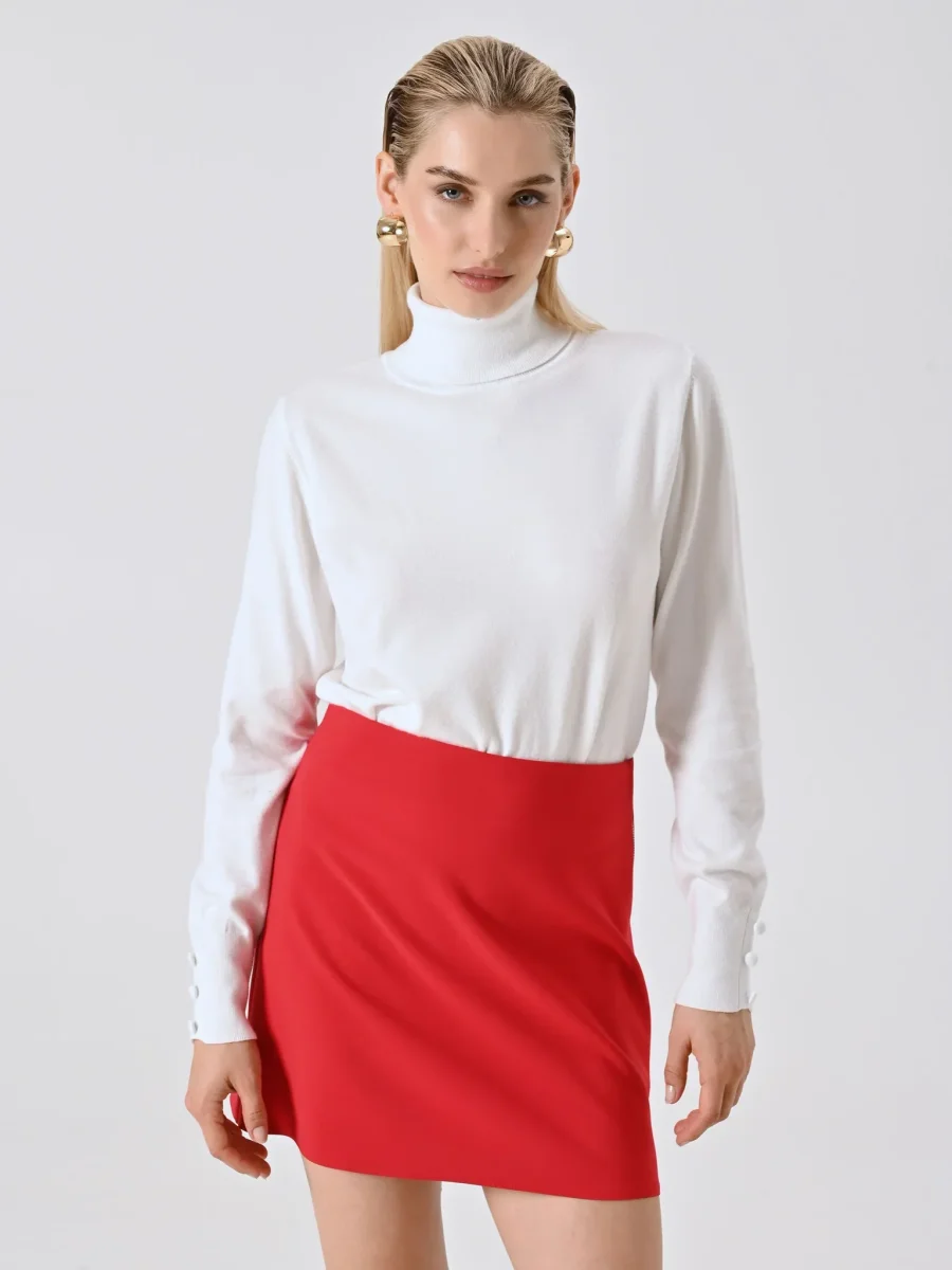 Questo dolcevita รจ il capo fondamentale che risolve ogni esigenza di stile. Indossalo sotto un blazer strutturato per un look da ufficio impeccabile, stratificalo sotto un cappotto per le giornate piรน fredde, oppure abbinalo semplicemente a pantaloni sartoriali o jeans per un’eleganza minimalista che non passa mai di moda.