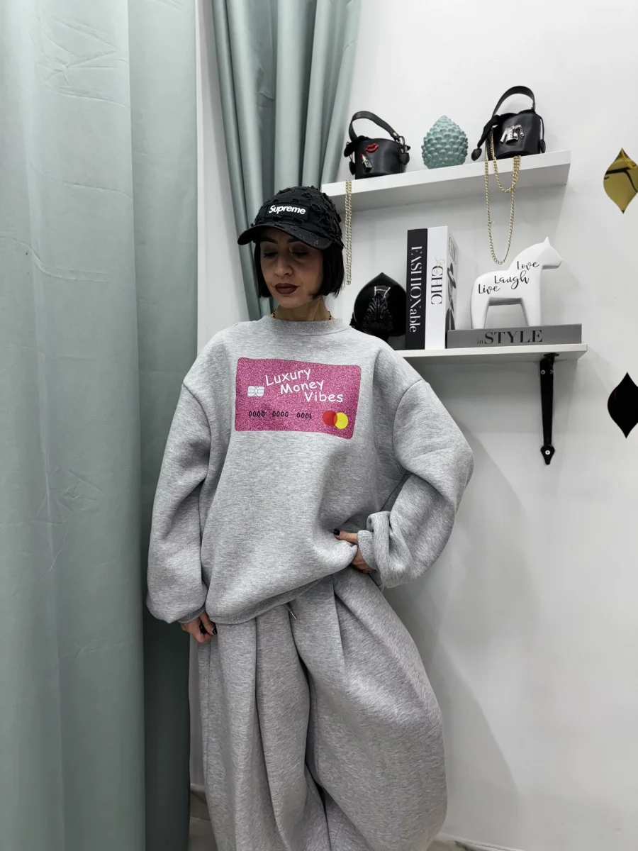 ✔ Stampa frontale effetto carta di credito “Luxury Money Vibes”, moderna e ironica, ideale per chi ama distinguersi