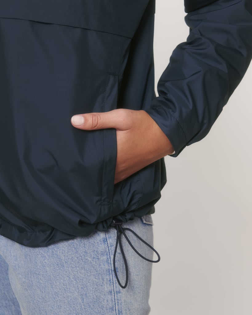 - Cappuccio foderato con fermacorda in plastica regolabile e cordino elastico all’interno