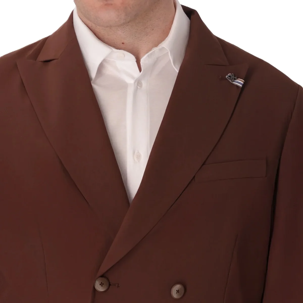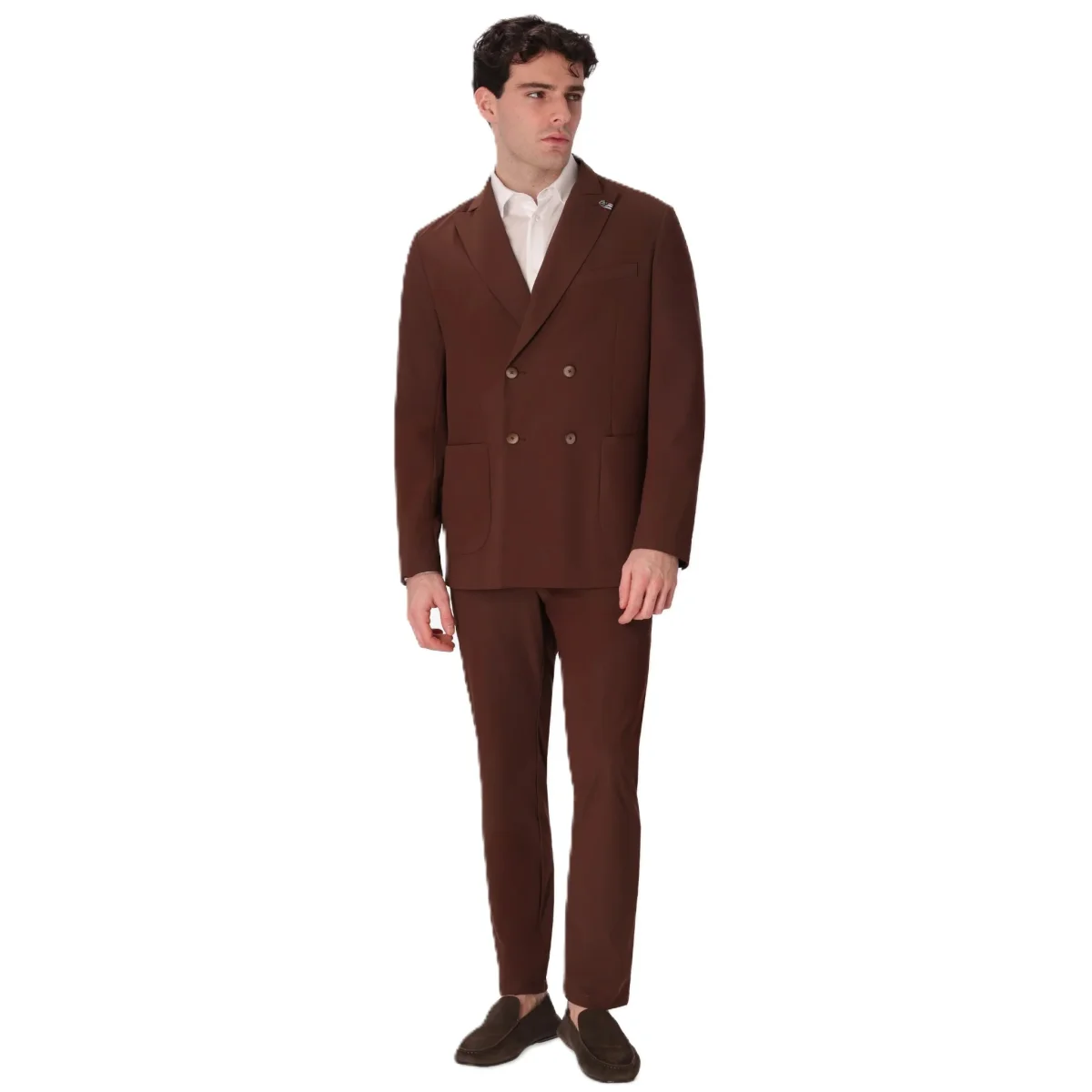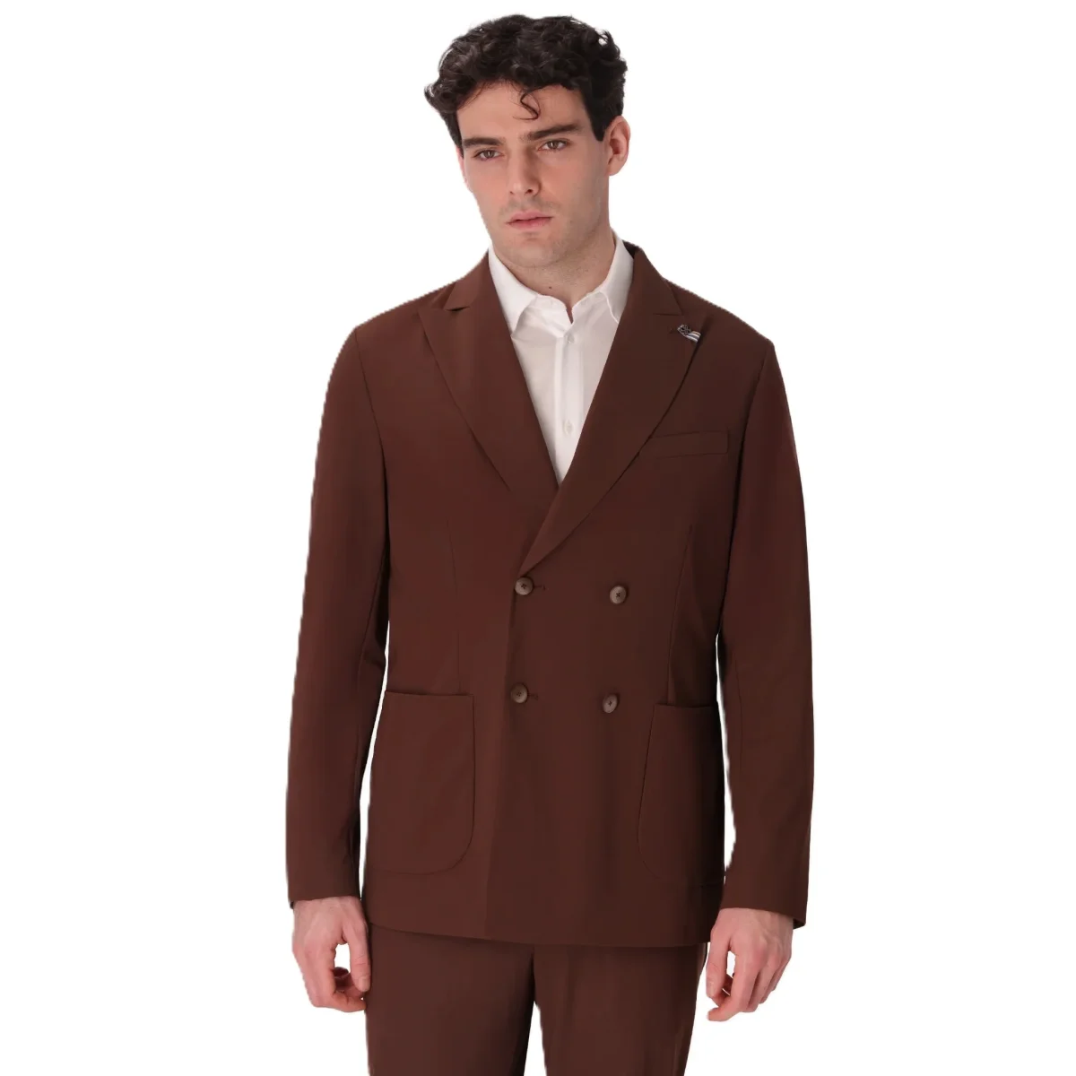 Giacca doppiopetto contraddistinta dal tessuto tecnico โactiveโ super stretch, water repellent, traspirante e leggero, garantendo alte performance in termini di elasticitร e comfort. Il capo presenta unโabbottonatura centrale con asole e bottoni, revers a lancia, tasche frontali a toppa e taschino a pistagna sul petto.