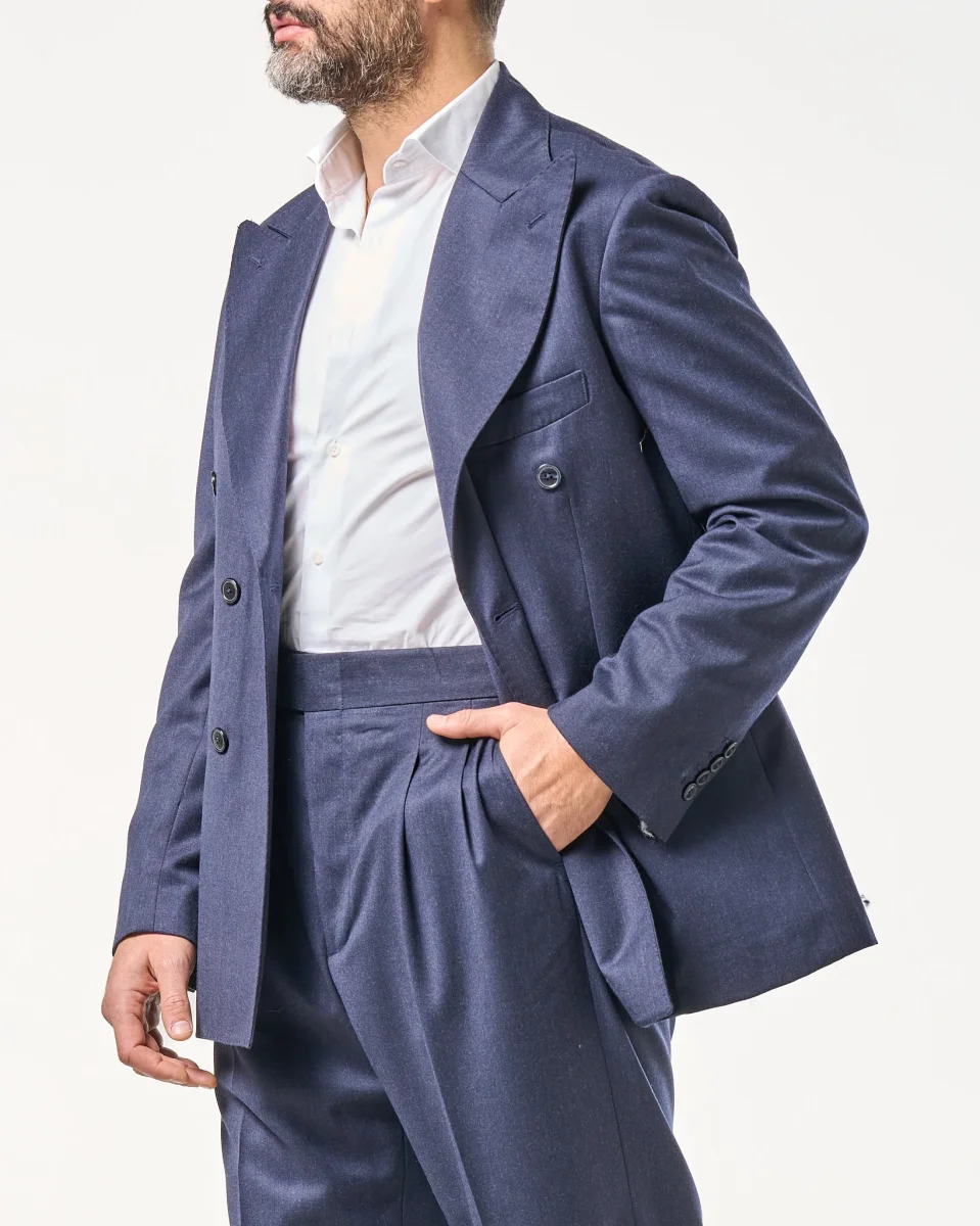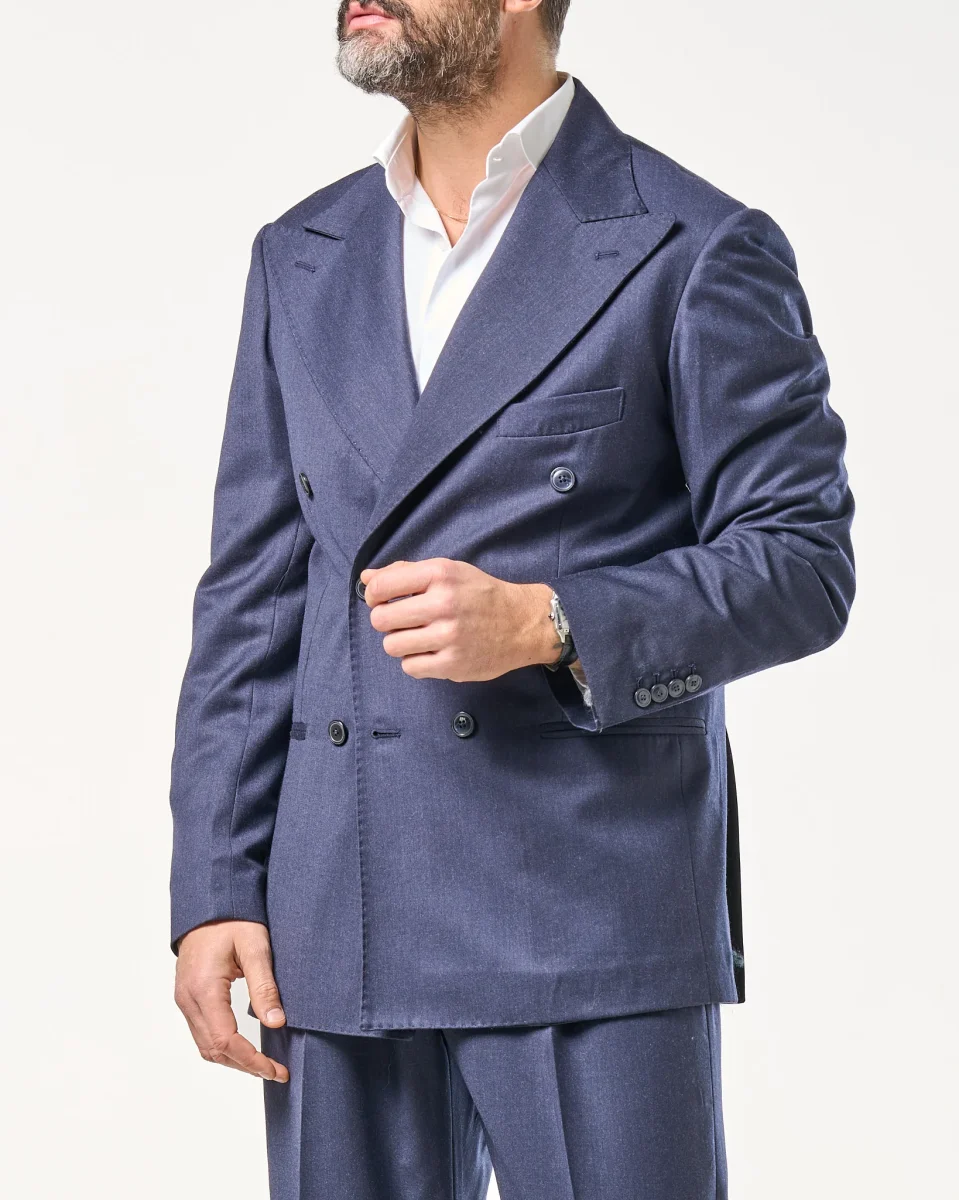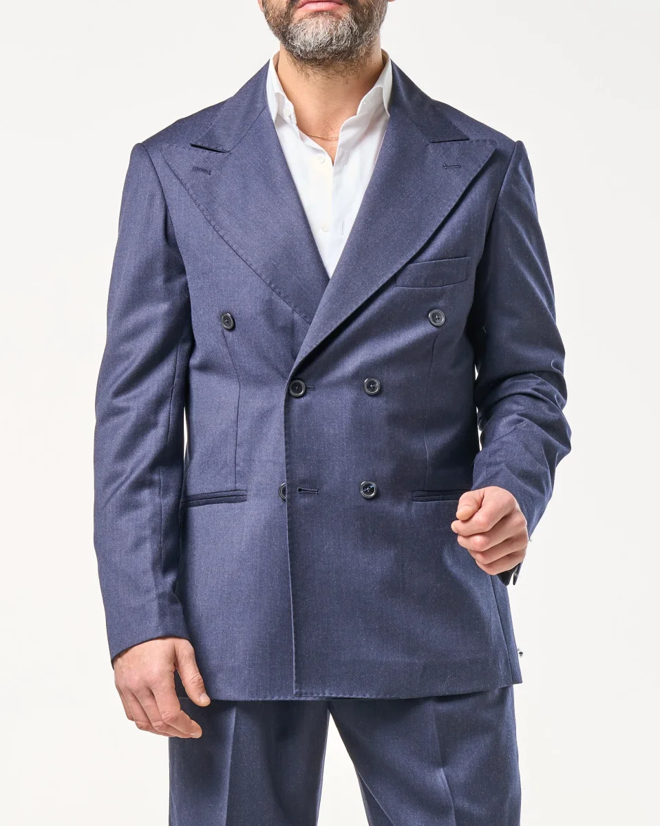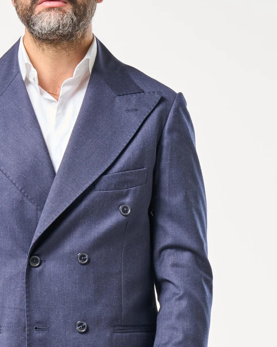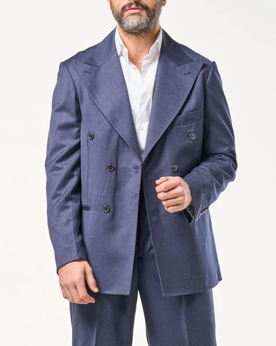 Giacca Doppiopetto in Lana Foulè con Abbottonatura Centrale e Rever a Lancia Blu