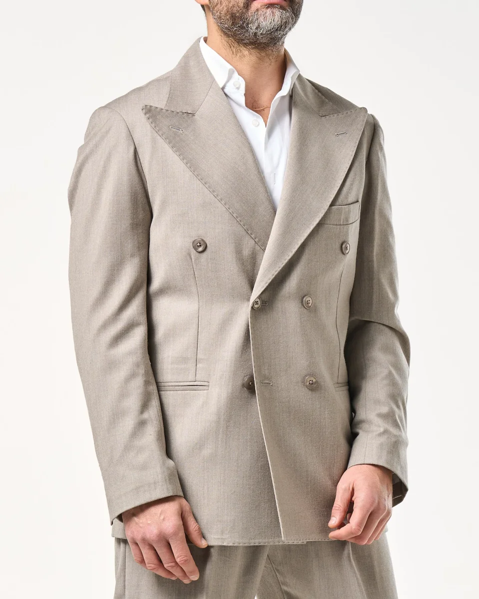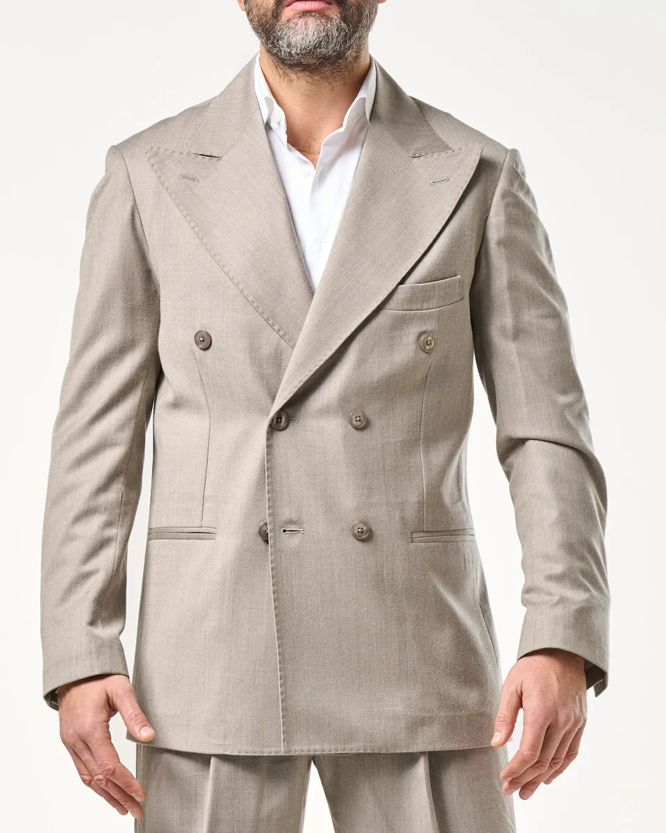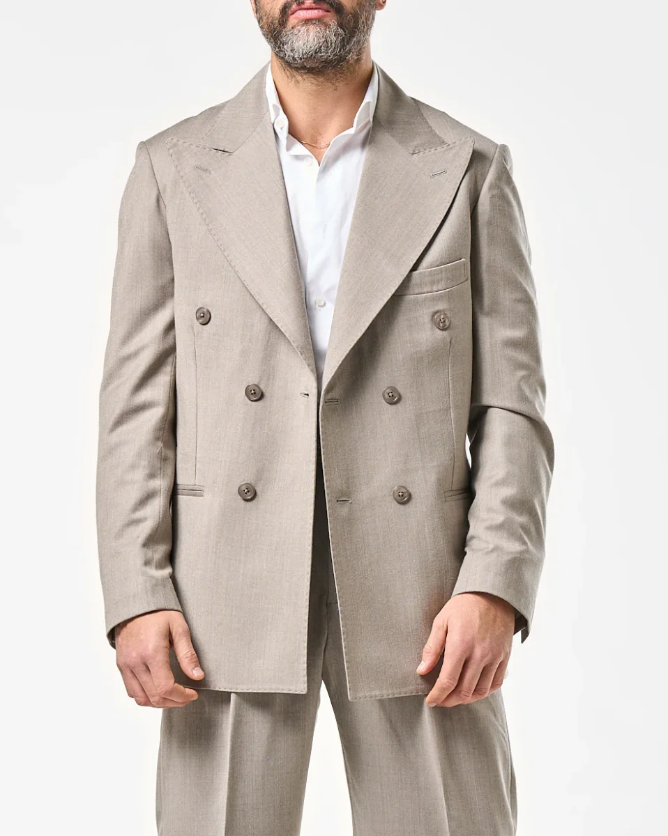 Giacca Doppiopetto in Lana Foulè con Abbottonatura Centrale e Rever a Lancia Sabbia Norcia