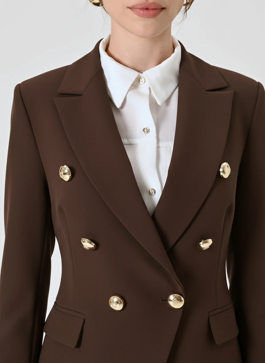 La Giacca Doppiopetto in Tessuto Tecnico รจ un capo dal design deciso, pensato per completare con stile i look piรน formali della stagione. Realizzata in tessuto tecnico, presenta costruzione doppiopetto con abbottonatura a vista, ulteriore bottone interno piatto, tasche con patta, fodera interna, bottoni bold dorati, spalline imbottite e revers a lancia. Indossa la Giacca Doppiopetto in Tessuto Tecnico per lโufficio, una laurea o altre occasioni in cui desideri uno stile raffinato e professionale. Il capo รจ Made in Italy. La modella รจ alta 1,74 m e indossa la taglia S.