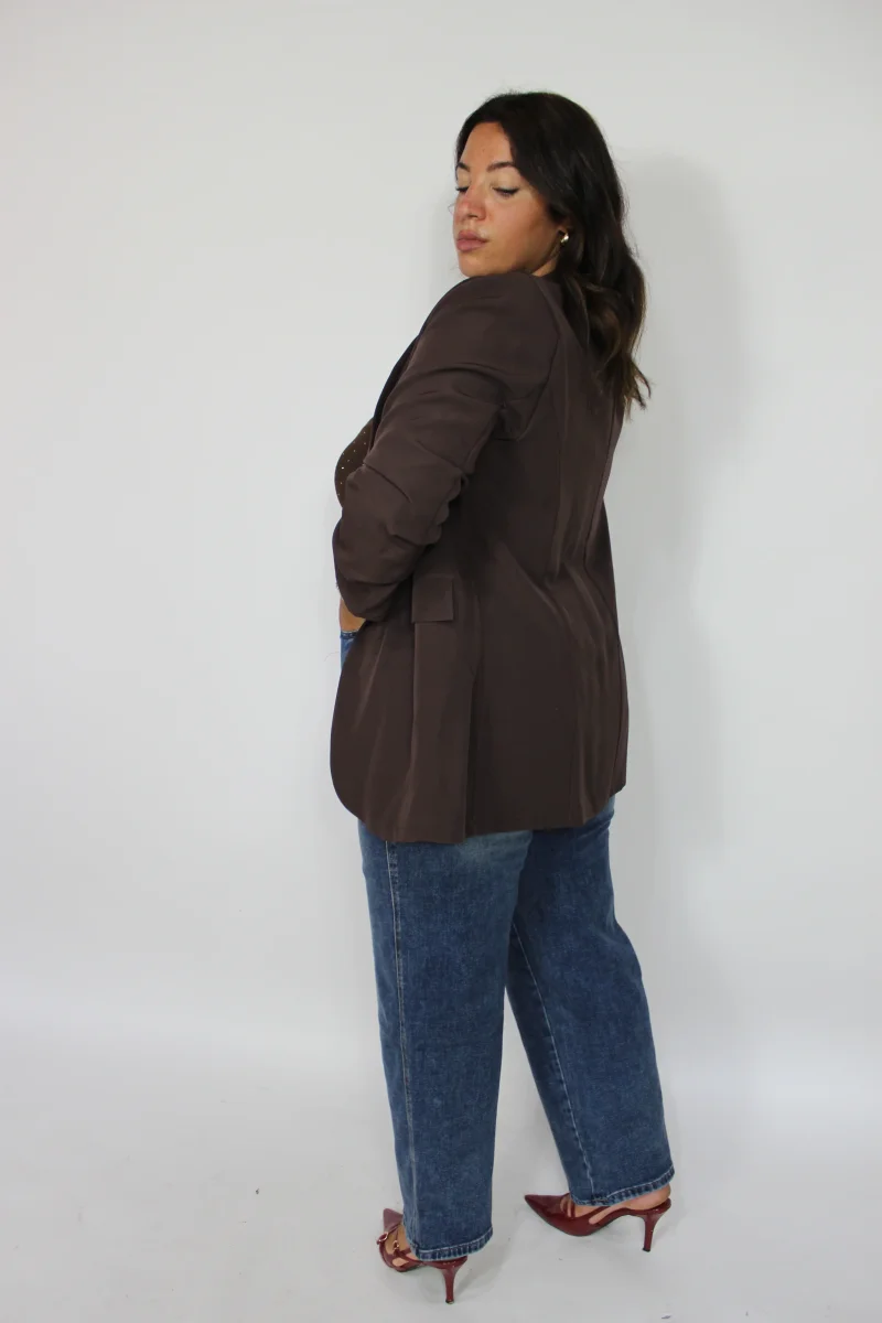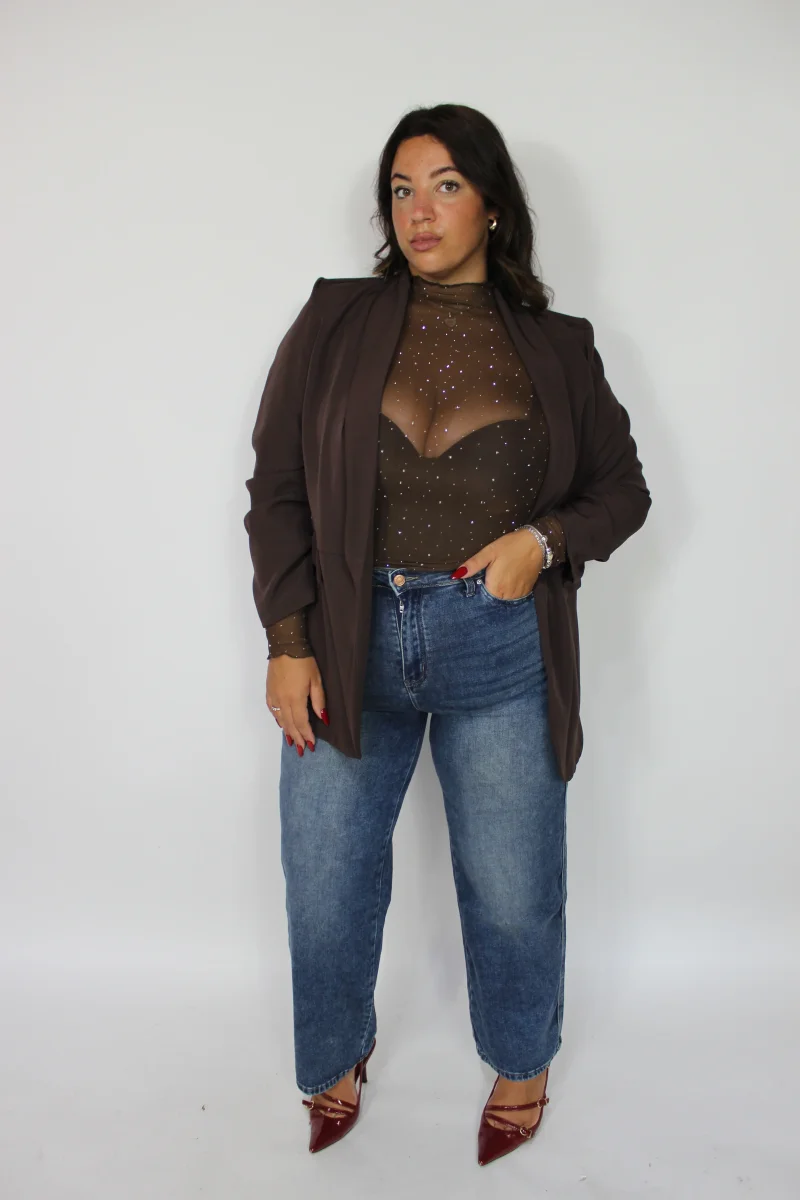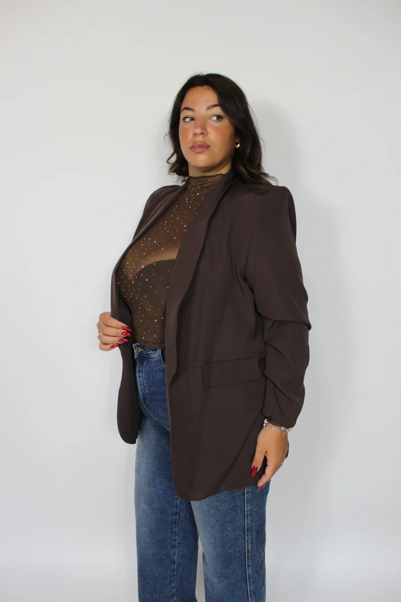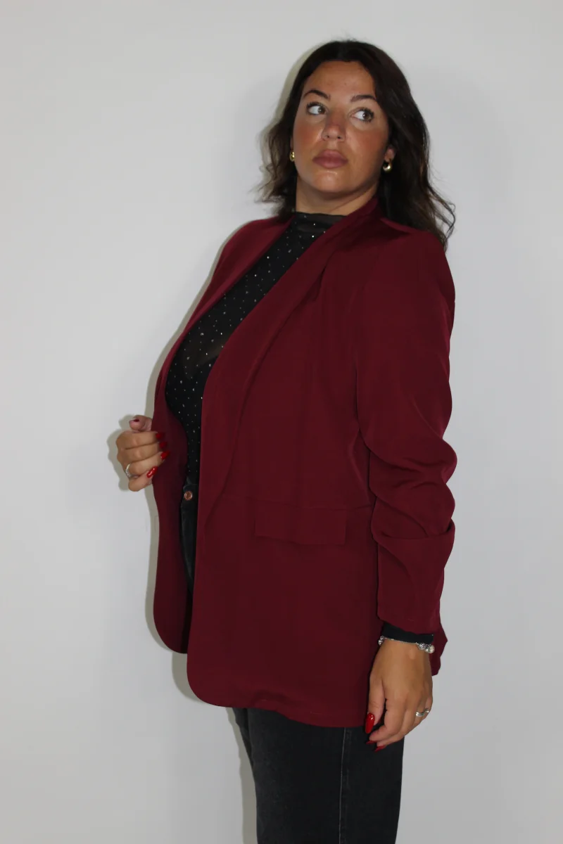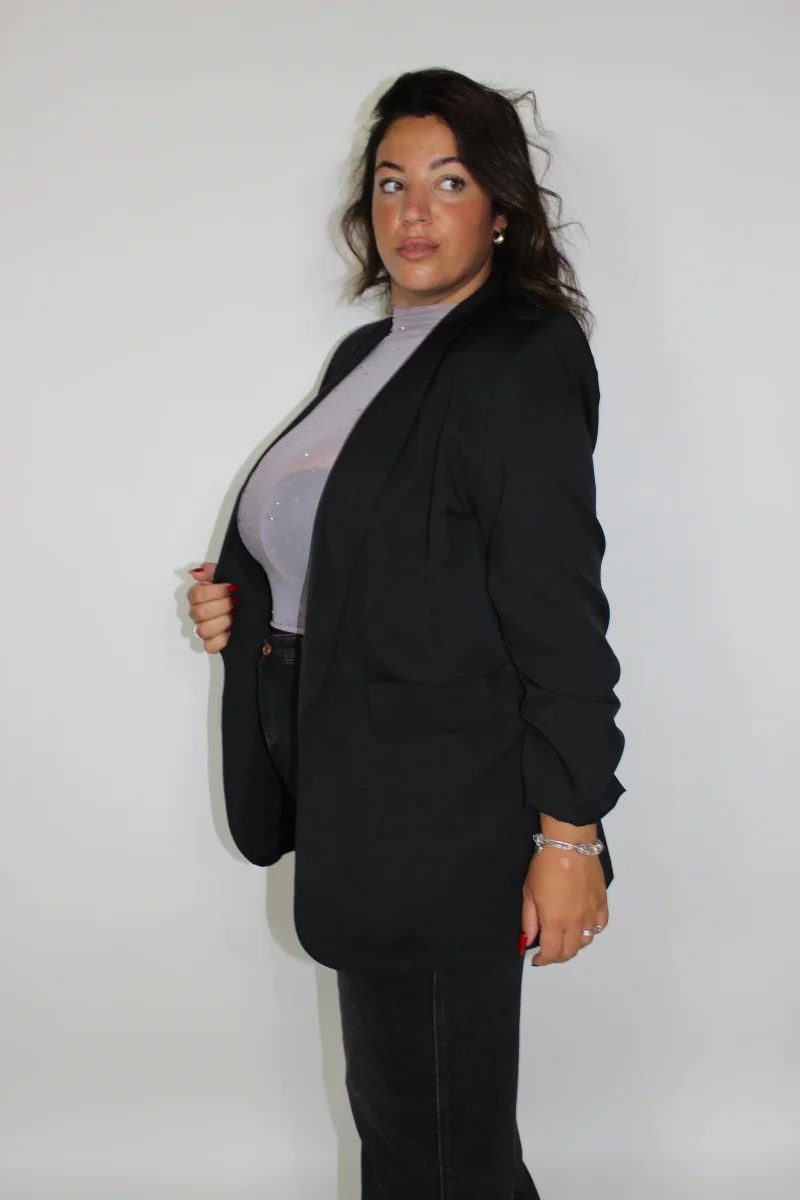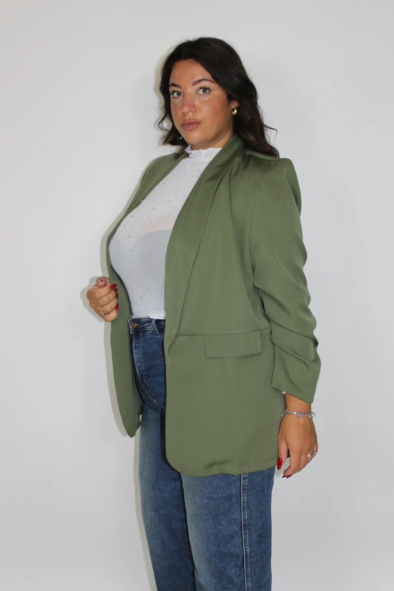 Giacca sfoderata, senza bottoni, con manica drappeggiata. Taglia unica vestibilitรก da taglia 48 a 56