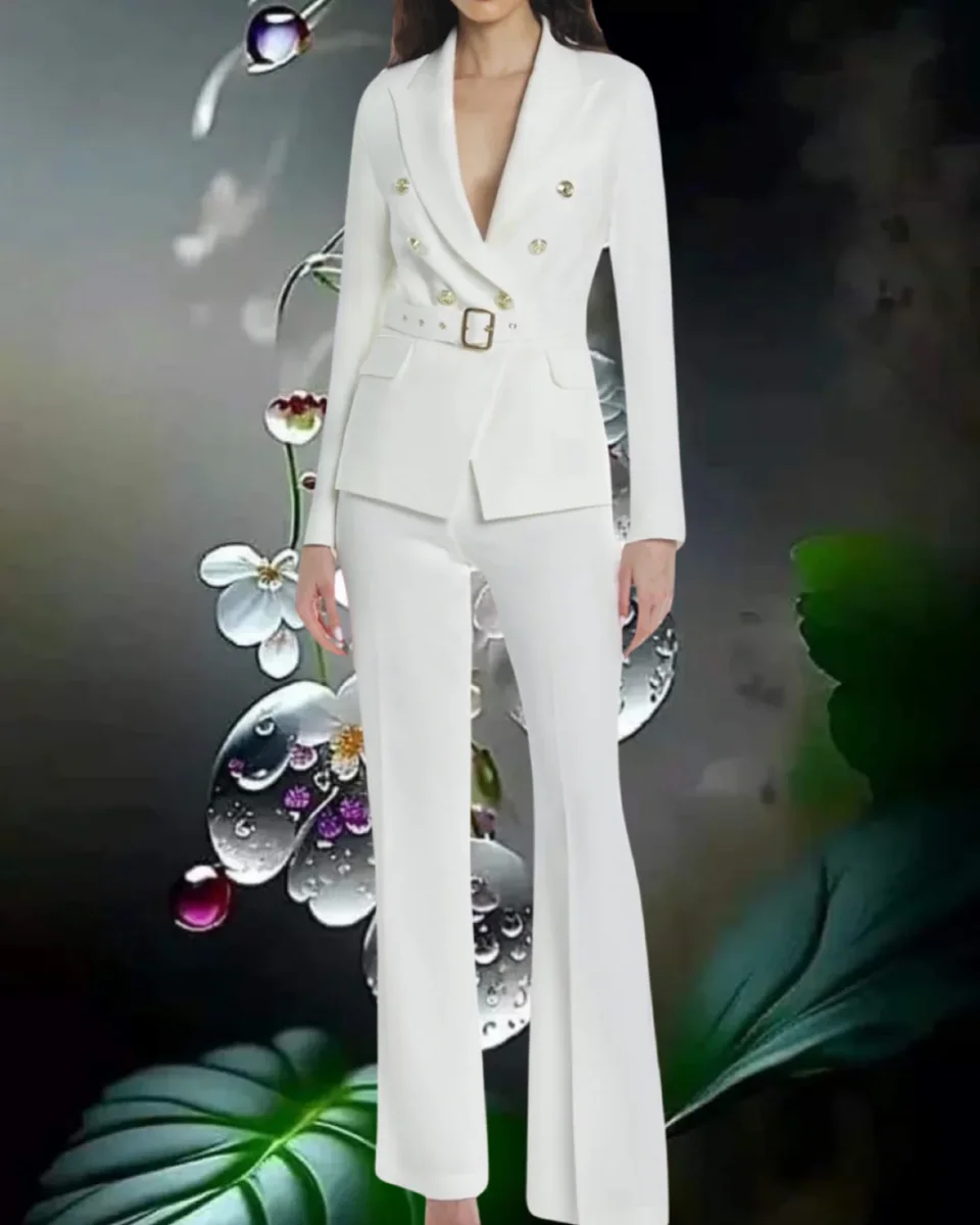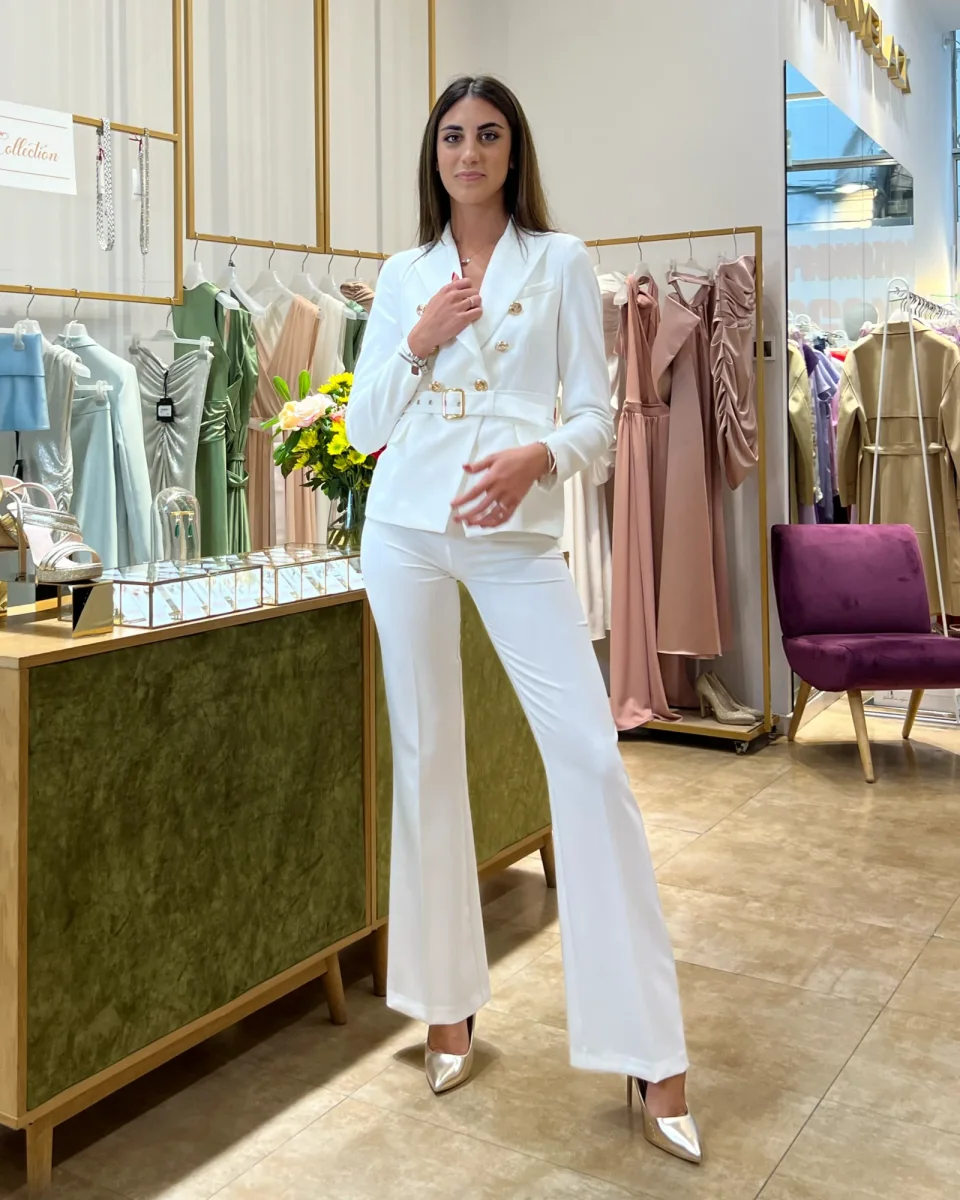 Giacca “Iconic Femininity” da tailleur bianco doppiopetto con cintura