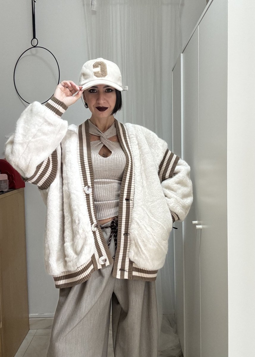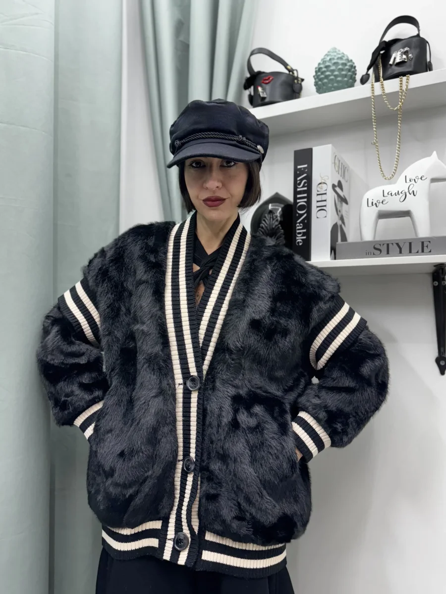 Giubbino Bomber in Eco Fur Oversize – Modello College, Taglia Unica (fino alla 50)