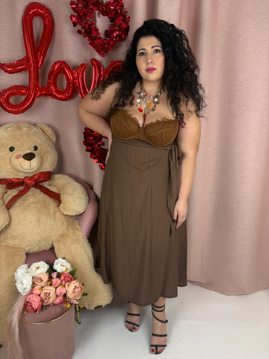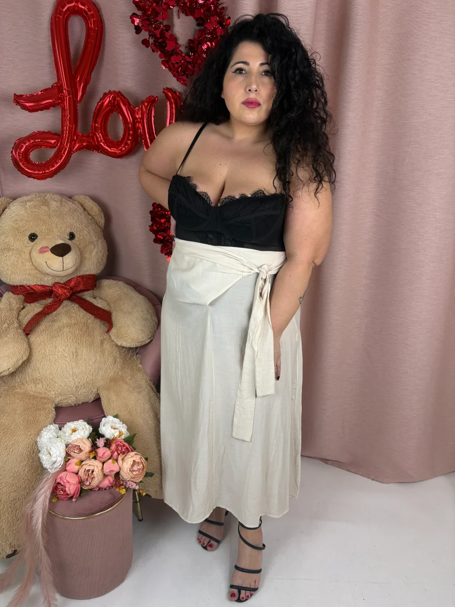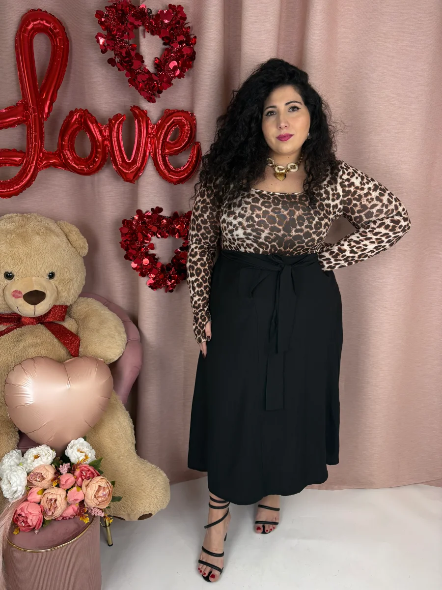 Gonna in taglia unica Curvy, veste dalla taglia 46 alla taglia 54.La ragazza in foto รจ taglia 52-54. I centimetri del suo corpo sono: Altezza 1.69 cm/ Giro vita 123 cm /Giro fianchi 143cm