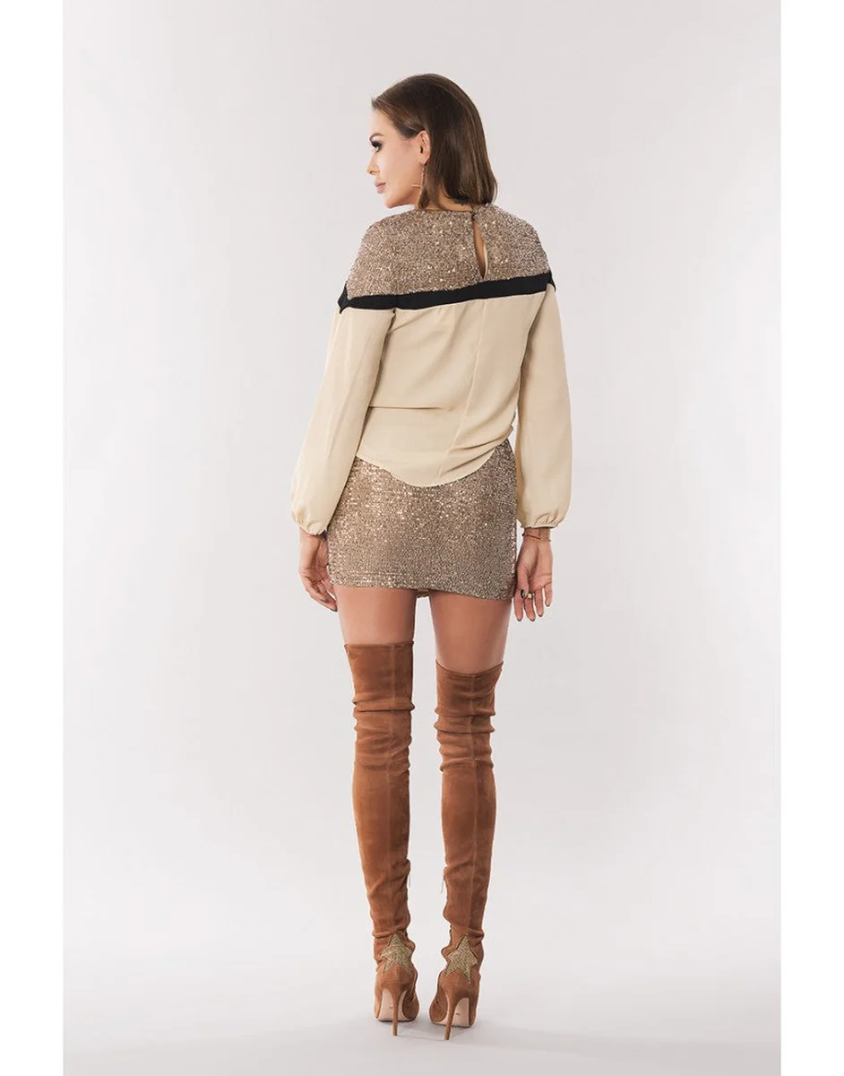 Gonna Rinascimento Full Paillettes, con chiusura zip a scomparsa alla schiena. Il capo รจ Interamente Made In Italy.