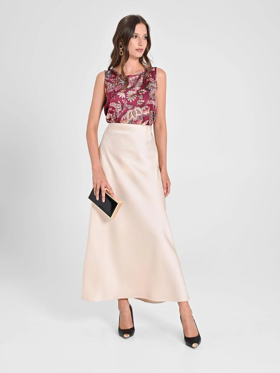Gonna midi, realizzata in envers satin di peso medio. La gonna ha un design minimalista ed essenziale: indossala con un top elegante per un evento, con una blusa per un’occasione elegante o con un maglioncino per un look casual. Banda elastica in vita. Il capo รจ interamente made in Italy. La modella รจ alta 1,73 ed indossa la taglia S. Il capo in taglia S corrisponde alle seguenti misure: Il bacino misura 48 cm, la vita misura 31 cm,la lunghezza รจ 97 cm. Il capo in taglia S corrisponde alle seguenti misure: Il bacino misura 48 cm, la vita misura 31 cm,la lunghezza รจ 97 cm.