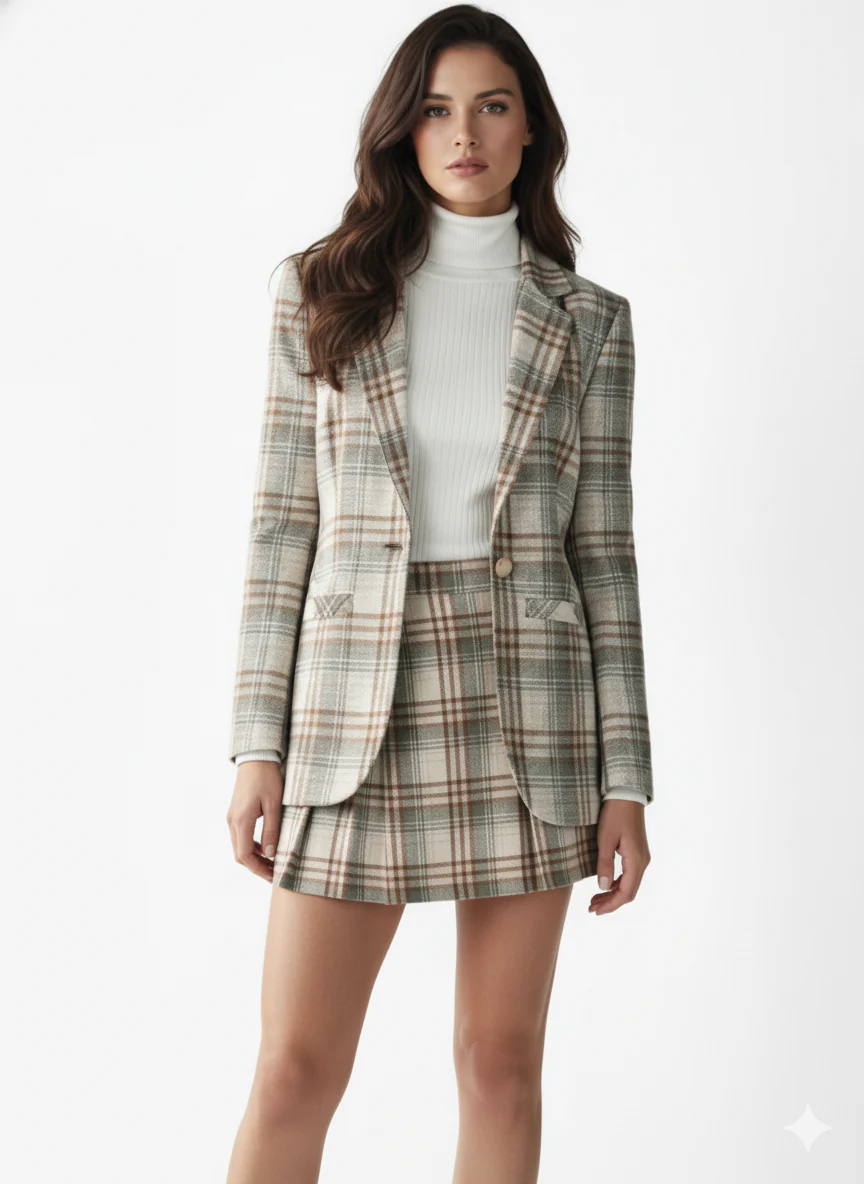 Gonna a vita alta con motivo scozzese classico, realizzata in tessuto strutturato che garantisce una silhouette impeccabile. Il pattern tartan intramontabile si abbina facilmente a maglie neutre o stampe audaci, rendendola un capo versatile per il guardaroba quotidiano e occasioni speciali. Dettagli raffinati e una vestibilitร confortevole la rendono ideale per chi ricerca eleganza senza compromessi. ABBINA LA GONNA ALLA GIACCA QUADRI MOTIVO SCOZZESE, DELLO STESSO TESSUTO E COLORE
