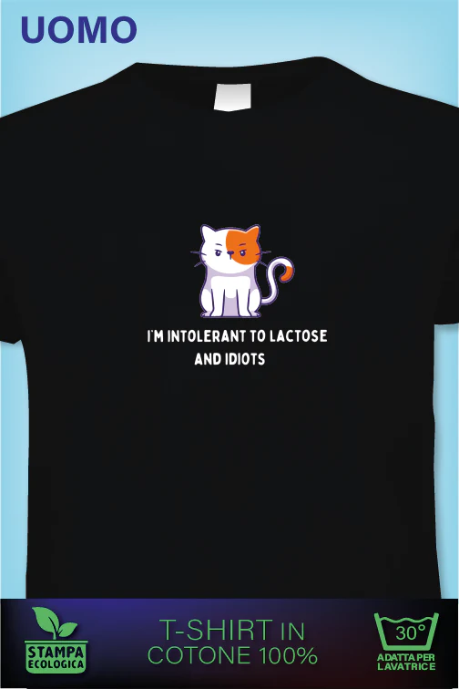 T-shirt “I’m Intolerant to Lactose and Idiots” โ Ironia e Stile in un Solo Capo! ๐ฑ๐ซ๐ฅ