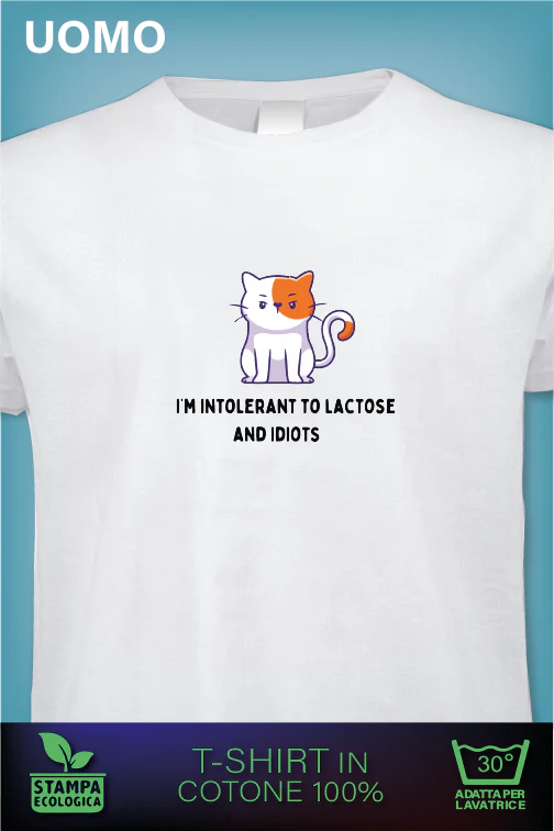 Se il lattosio ti dร problemi e le persone stupide anche di piรน, questa maglietta fa al caso tuo! Con un design divertente e originale, รจ perfetta per chi ama il sarcasmo e vuole farlo sapere al mondo.