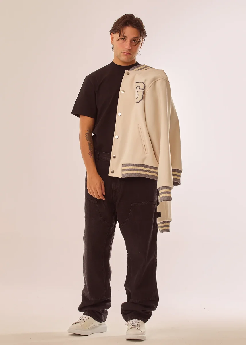 Jeans “Wide Leg”. Jeans destrutturato in tessuto testurizzato a gamba molto larga