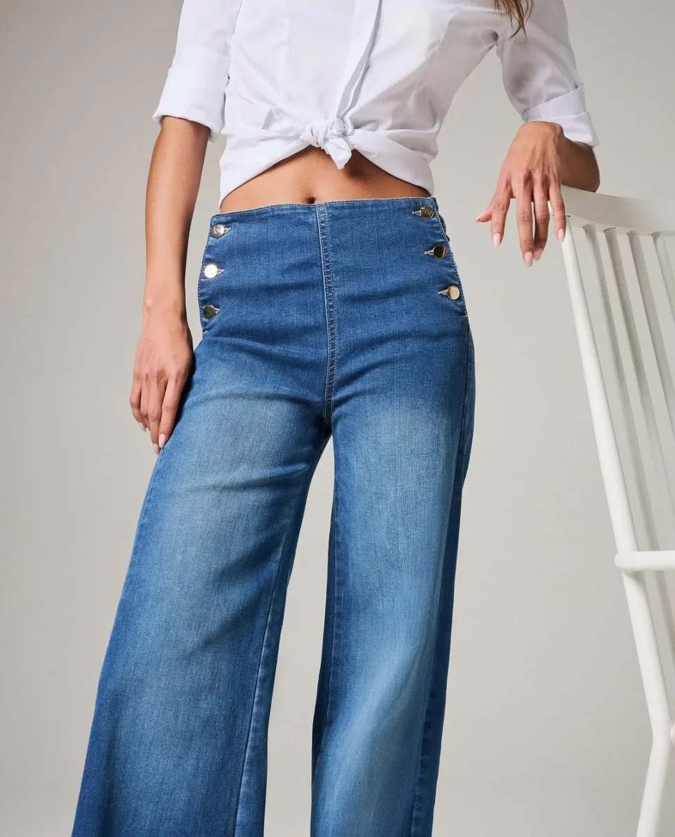 Jeans Bottoni Vita Alta