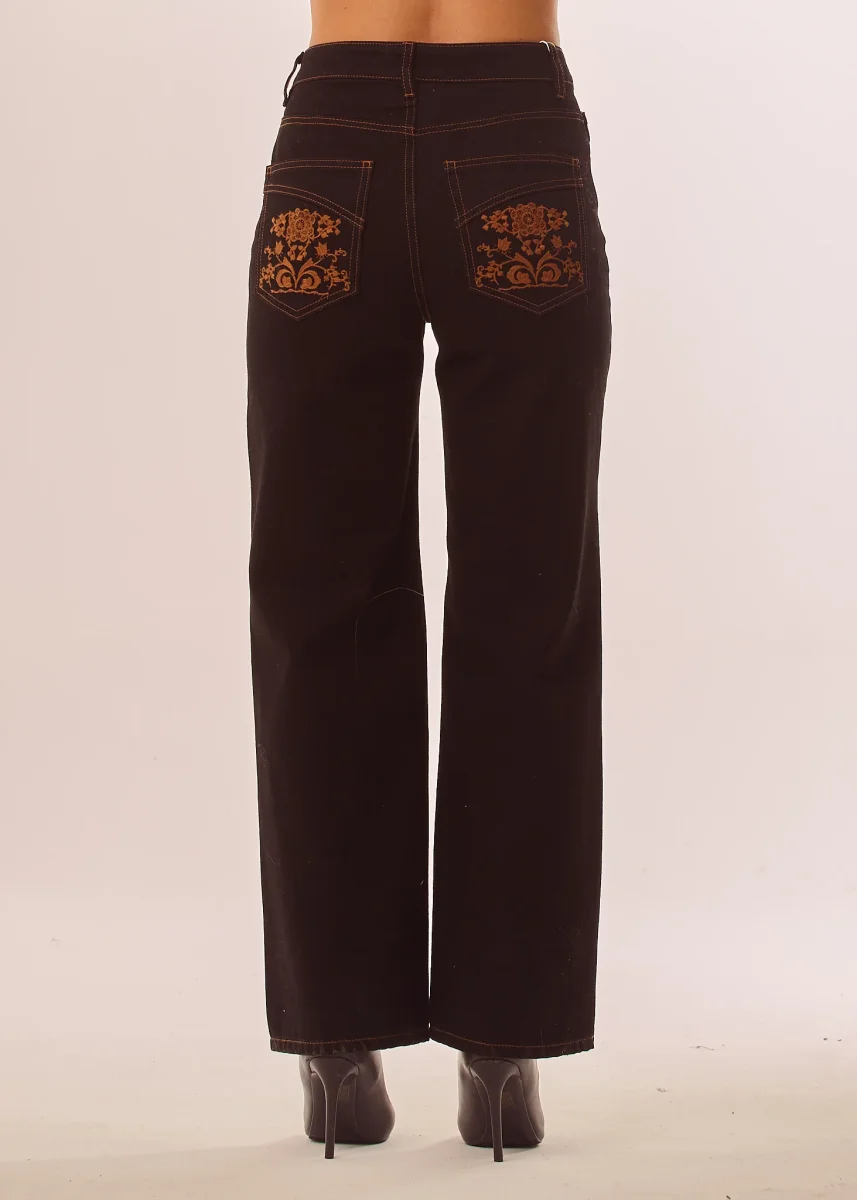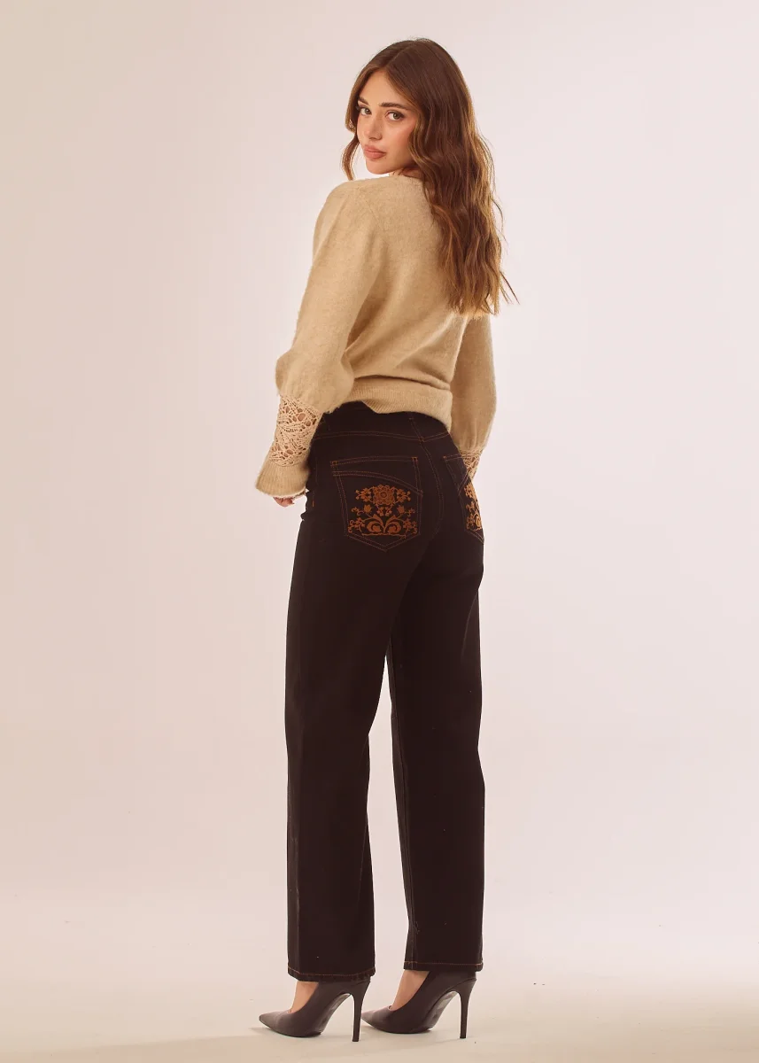 Jeans con impunture a contrasto e tasche ricamate