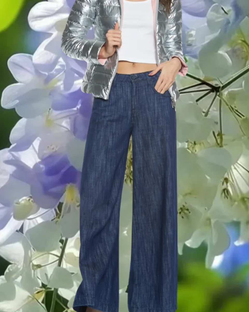 I jeans destrutturati con gamba larga sembrano quasi parlare, raccontando la storia di una donna piena di vita, creativitร e voglia di esplorare il mondo.